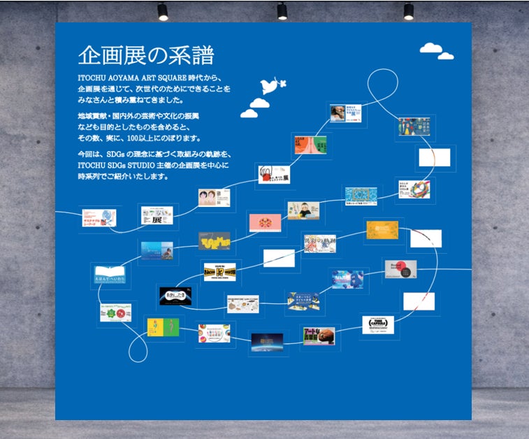 ITOCHU AOYAMA ART SQUARE時代から、企画展を通じて、次世代のためにできることをみなさんと積み重ねてきました。今回は、ITOCHU SDGs STUDIO主催の企画展を中心に時系列でご紹介いたします。