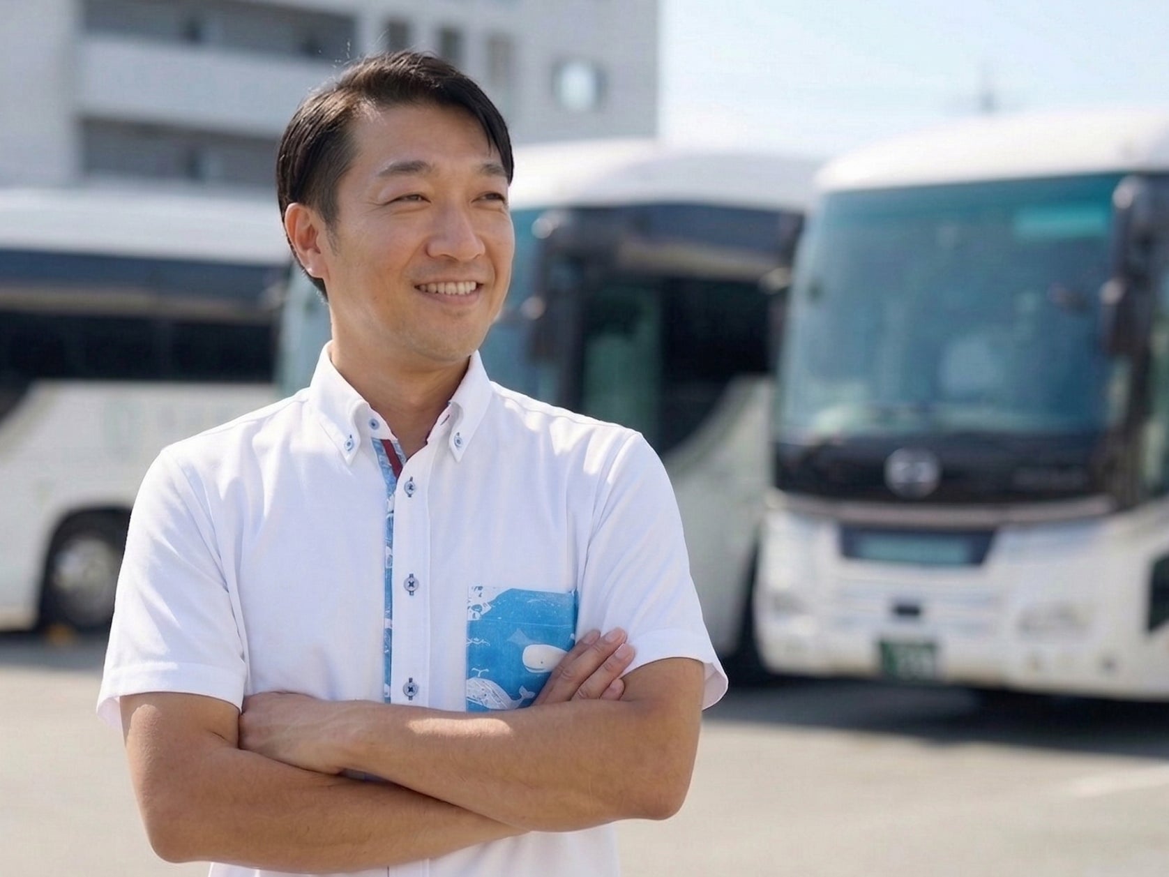 スタッフB:「最初は半信半疑でしたが、実際に使うと拭き上げなしでも仕上がりが非常にきれいで驚きました。これまでは脚立に上がって大型車両を拭き上げる作業が欠かせず時間もかかっていましたが、今は洗車がとてもスムーズです。プラチナキャビンは“バスの美しさ”も大切なサービスの一つと考えており、いつもきれいな状態でお客様をお迎えできることは、他社との差別化ポイントとして当社の価値につながっています」