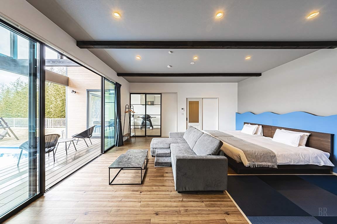 一棟貸切型のヴィラ内には、プライベートドッグラン、プール、バレルサウナを各棟に標準装備。他のゲストやワンちゃんを気にすることなく、春の柔らかな空気の中で、大切な家族だけの濃密な時間を過ごせます。