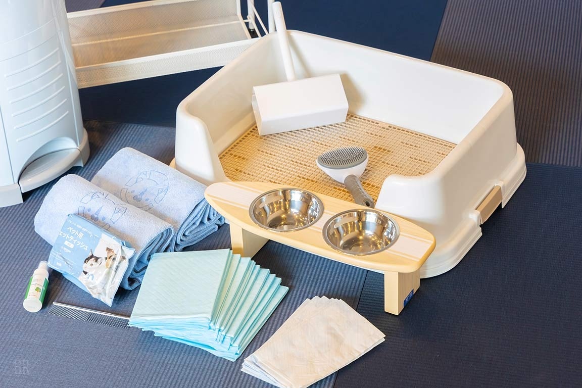 「大切な家族である愛犬と、もっと気軽に旅をしてほしい」という想いから、ケージやトイレシート、食器などのペットアメニティを全室に完備。オーナー様の荷物を最小限に抑えつつ、愛犬が自分のお家のようにリラックスできる環境を整えました。 また、夕食は各棟の専用テラスでのBBQスタイル。レストランのように周囲を気にすることなく、食事中も常に愛犬の隣で寄り添うことができます。