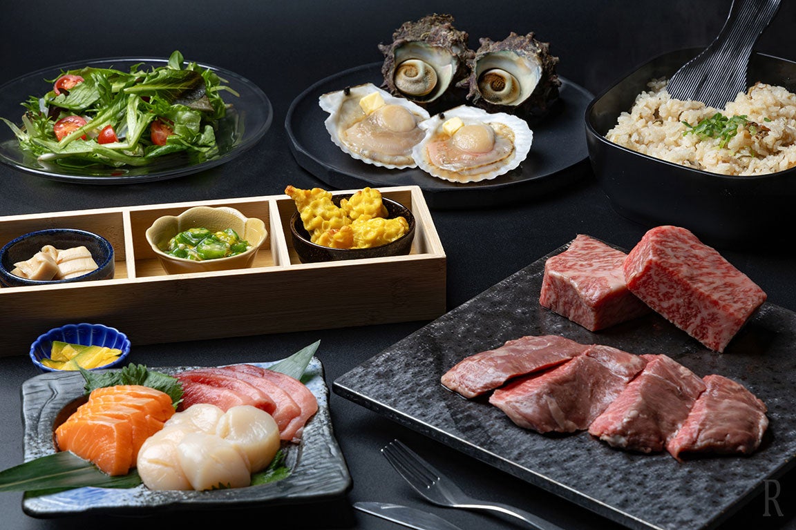 とろけるような食感の「千葉県産和牛(かずさ和牛)」をはじめ、磯の香りがたまらない「千葉県産サザエの浜焼き」など、地元の豊かな土地が育んだ厳選肉と海鮮をセットに。愛犬の傍らで、一宮の美食を存分に味わうディナーです。