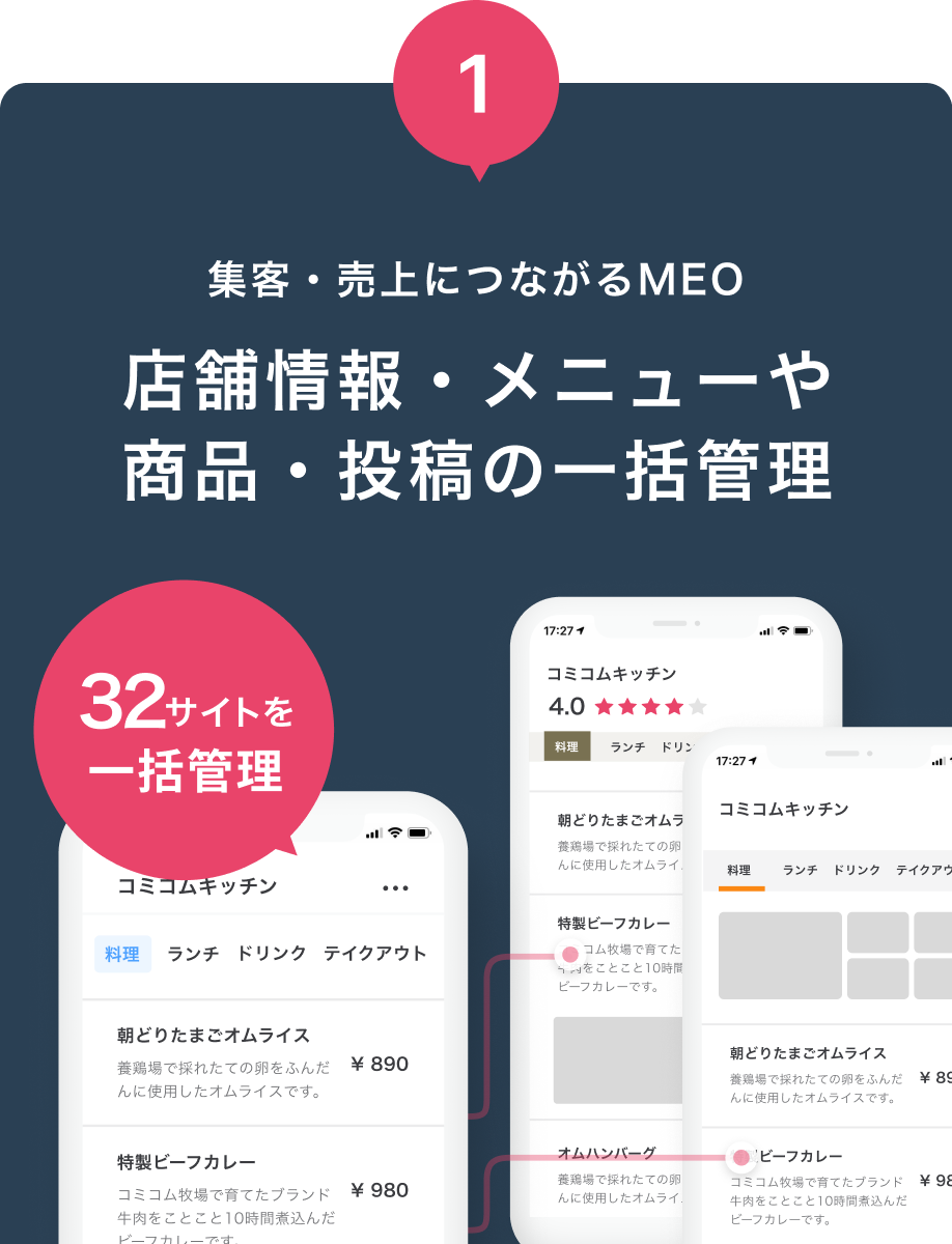 店舗情報・メニューや商品・投稿を一括管理