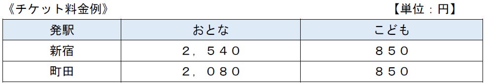 町田駅発の場合、おとな500円、こども450円、通常きっぷ購入よりもお得です。