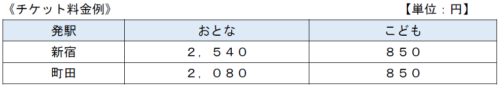 町田駅発の場合、おとな500円、こども450円、通常きっぷ購入よりもお得です。