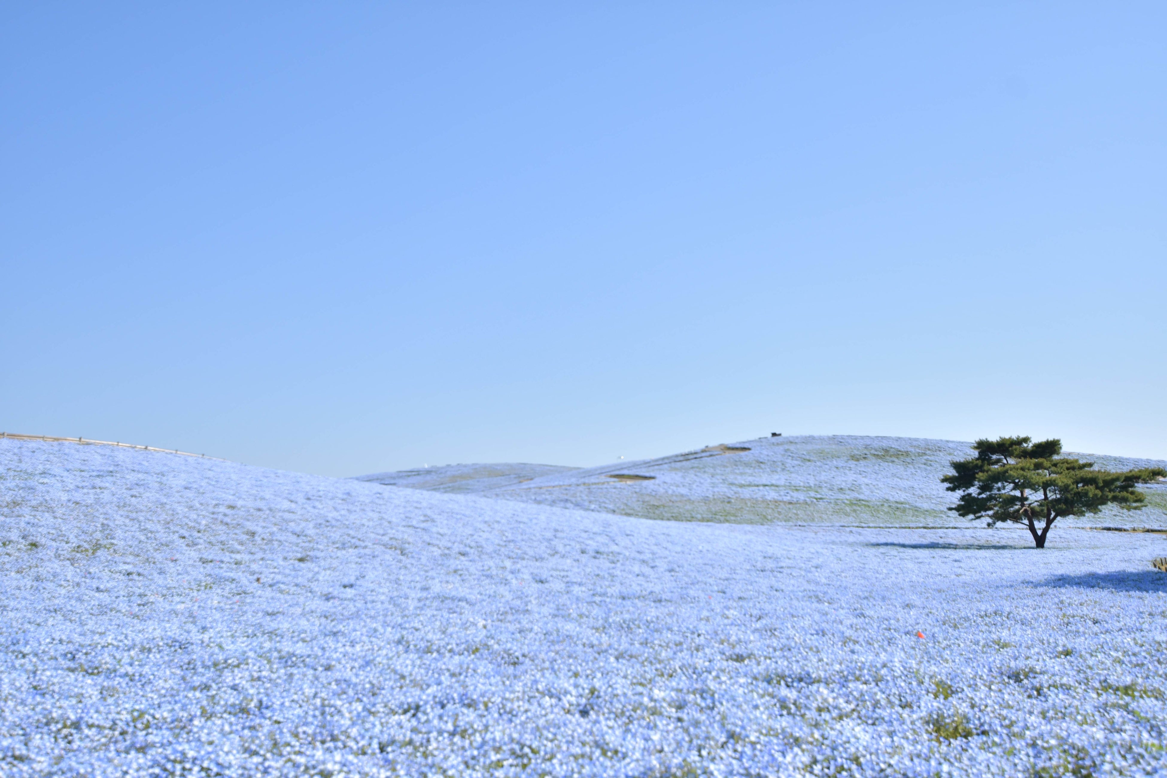 国営ひたち海浜公園では、四季折々の花や豊かな自然をお楽しみいただけるよう、季節ごとにさまざまなイベントを企画しています。「みはらしの丘」一面を青一色に染めあげる約530万本のネモフィラは、4月中旬~5月上旬に見頃を迎えます。空と海と丘が渾然一体になるパノラマシーンは圧巻です。