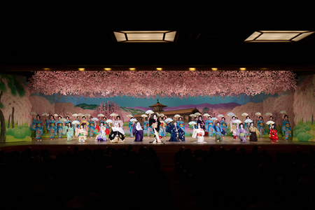 百五十余年にわたり、京の春を彩る「都をどり」。「ヨーイヤサー」の掛け声とともに幕を開け、揃いの浅葱色の衣装をまとった芸舞妓による一糸乱れぬ“総をどり”が、幻想的な世界へと誘います。