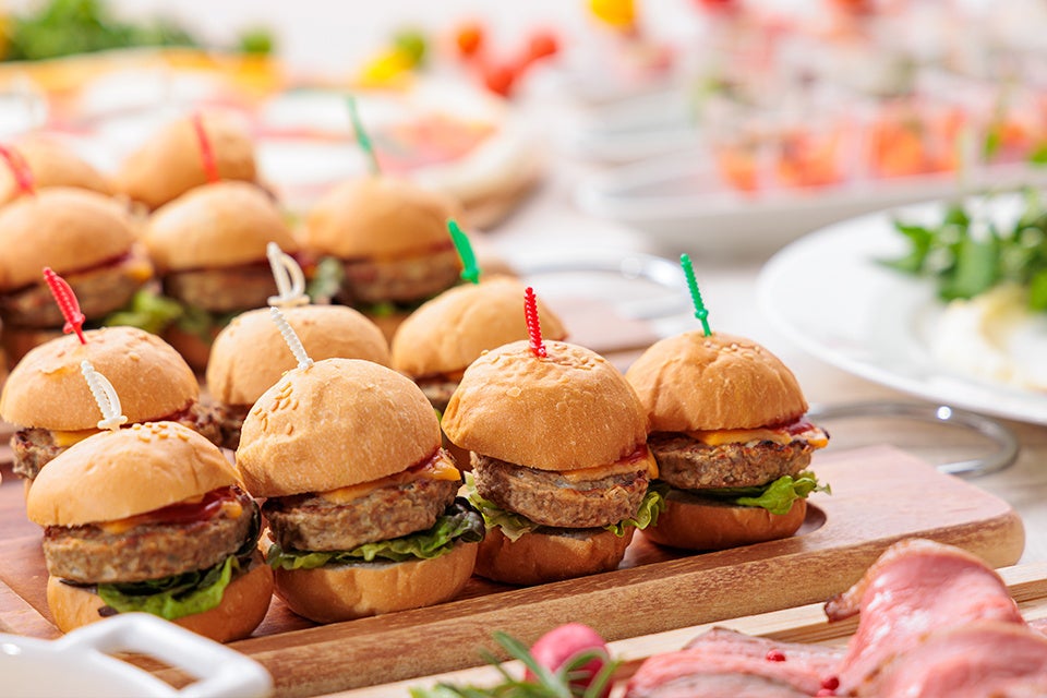 ローストポーク ベリービネガーソース/ピザ マルゲリータ/シーフードのフィルム包み/ミニハンバーガー/ミニアメリカンドッグ/ポテトフライ/チキンのから揚げ/色とりどりの中華点心/トマトチキンカレー/ビーフカレー/サフランライス/ポタージュスープ/パン各種/兵庫県産米の白ご飯
