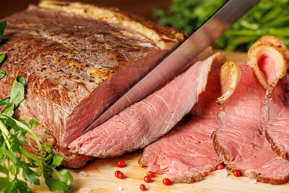 特設ローストビーフコーナーで切り出すローストビーフ