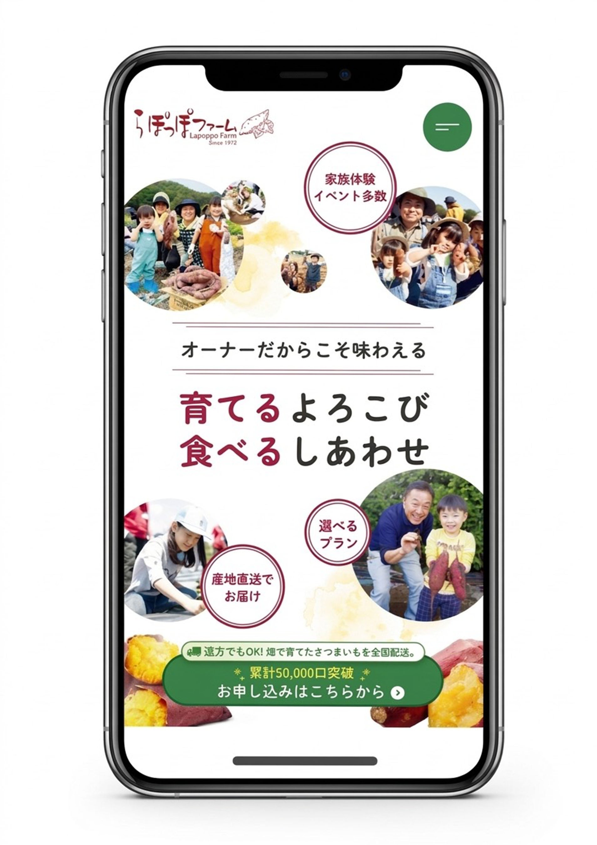 白ハト食品工業株式会社(本社:大阪府守口市、代表:代表取締役社長 永尾俊一)が運営するさつまいもスイーツ専門店「らぽっぽファーム」は、全国5カ所の農園で開催する、苗植えから収穫までを体験できる人気プログラム「おいも株オーナー制度」の苗植会の参加者募集を開始しました。参加者は自分のさつまいも株のオーナーとなり、農園スタッフと一緒に苗を植え、秋には育てたさつまいもを収穫できる毎年大人気の“農業体験型オーナー制度”です。