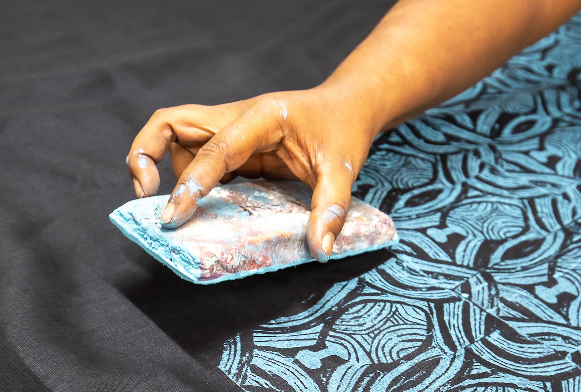 先住民ミリウング(Miriwoong)族に、伝統的なテキスタイルプリントを教わる参加型アートワークショップ。出来あがったテキスタイルは旅の思い出として持ち帰れます。
