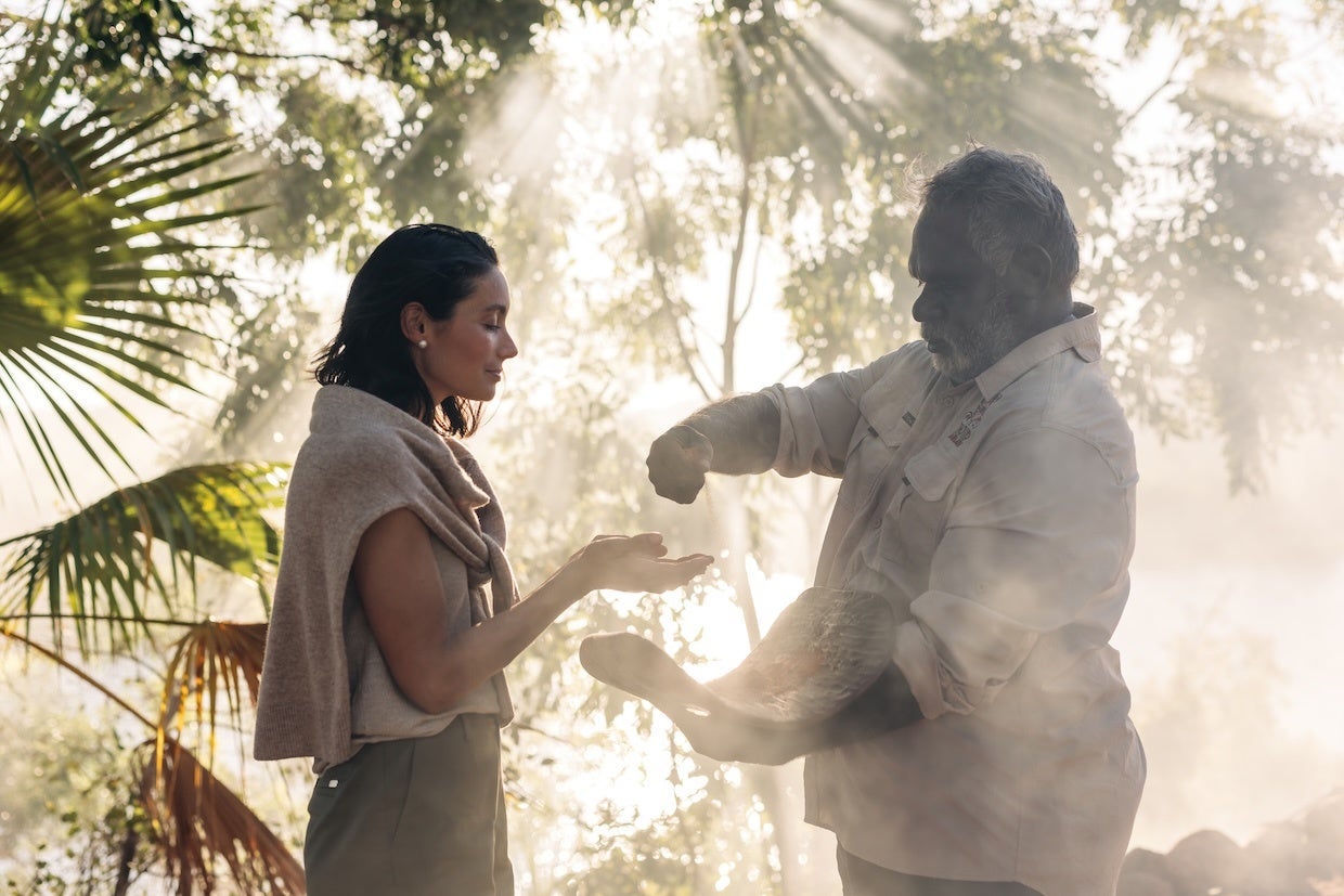 「エル・クエストロ・ステーション」の伝統的所有者である先住民ンガリニン(Ngarinyin)族のガイドによる特別な文化体験ツアー。チェンバレン川をクルーズしながらアボリジナルの文化である「ドリーミング」の物語を聞き、ランチにブッシュタッカー(先住民の伝統的な食材)を味わった後は、古代の癒しの儀式を体験し、1日を通して深くアボリジナルのカントリー(土地)と繋がる没入型の体験プログラムです。