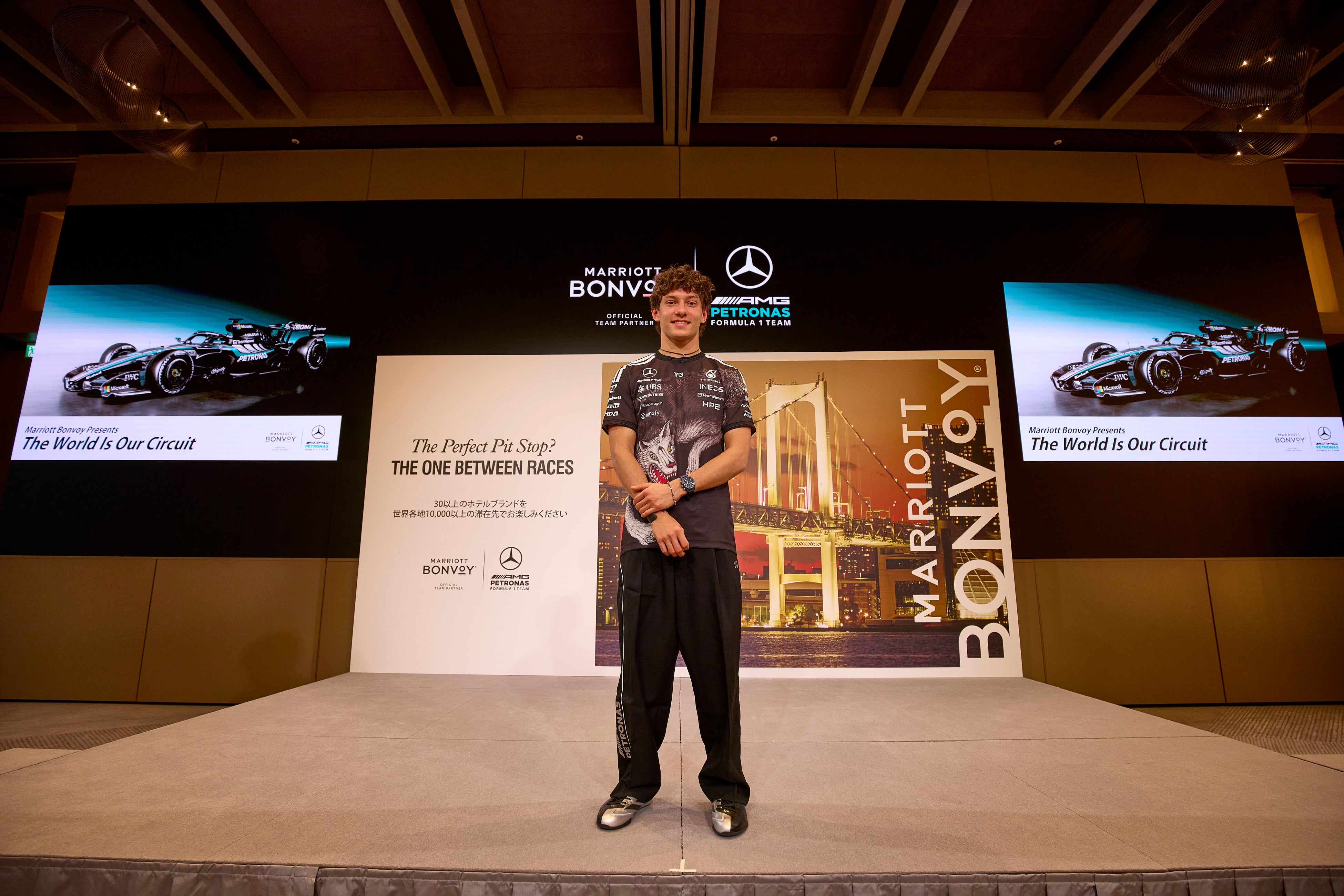 トークセッションでは、メルセデス AMG-ペトロナス・フォーミュラワン・チームのドライバーであるKimi Antonelli (キミ・アントネッリ)選手が、ドイバーとしての挑戦や世界各地を転戦するライフスタイル、レース前後のルーティン、日本のファンへのメッセージなどについて語ったほか、Marriott Bonvoyとの取り組みやホテルでの撮影エピソードについても披露し、会場は終始大きな盛り上がりに包まれました。