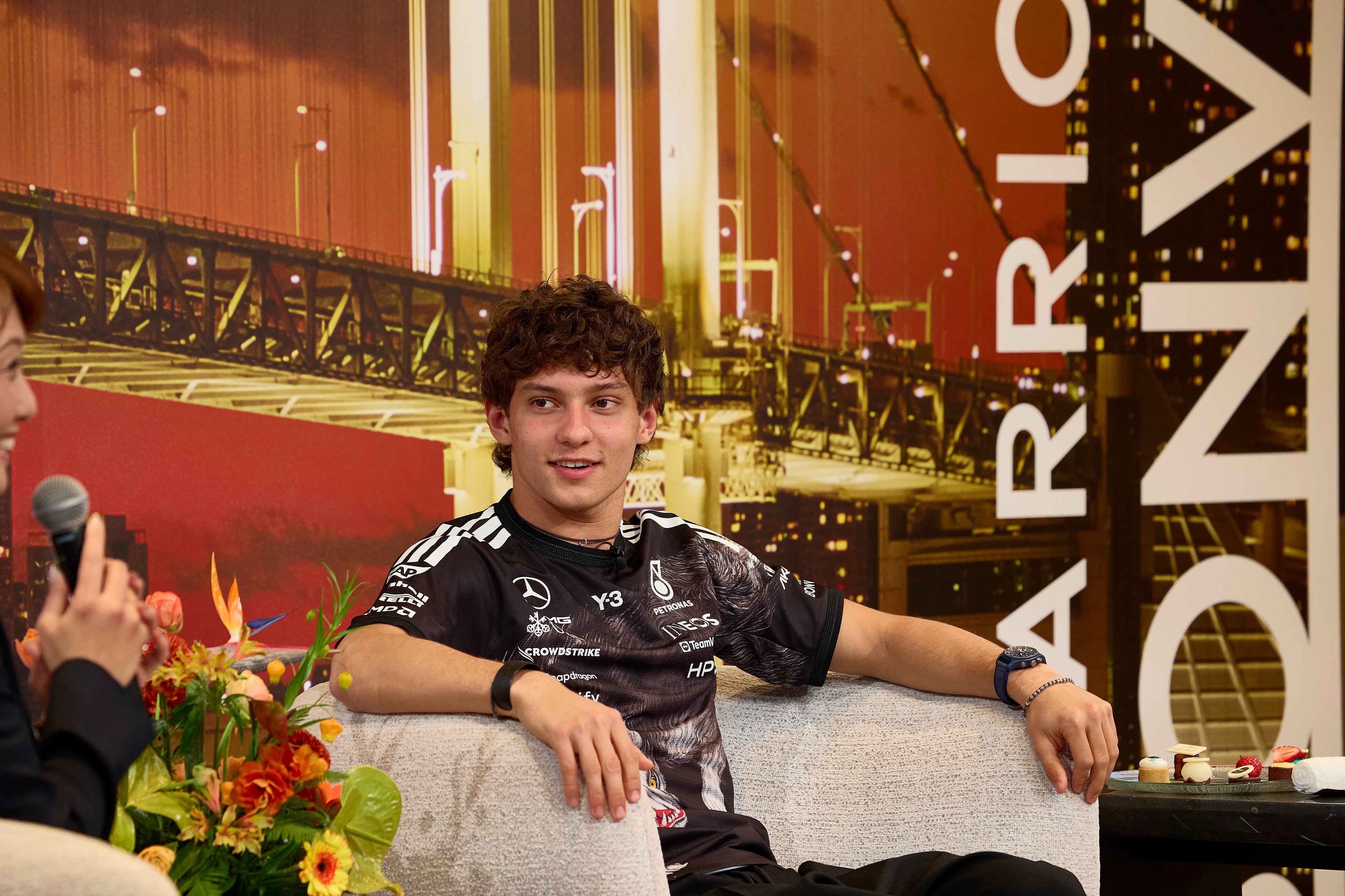 レース界で最も注目される若手ドライバーの一人であるアントネッリ選手が登壇すると、会場からは大きな拍手が送られ、温かい雰囲気の中でトークセッションがスタートしました。