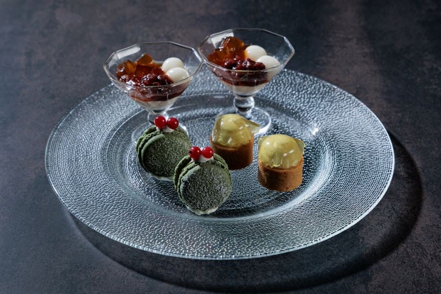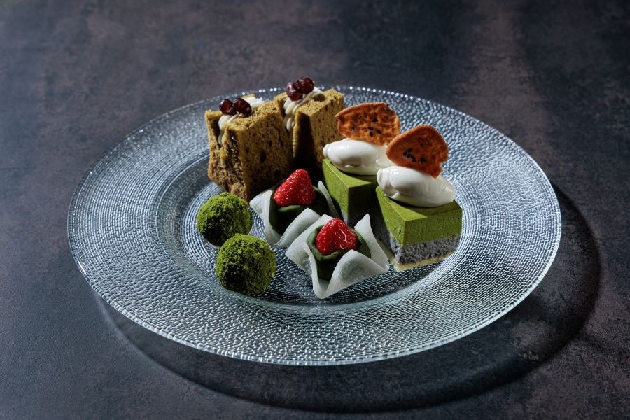 (中段) 抹茶シフォンケーキ/苔ボール/苺大福風/黒ごまと抹茶のムース