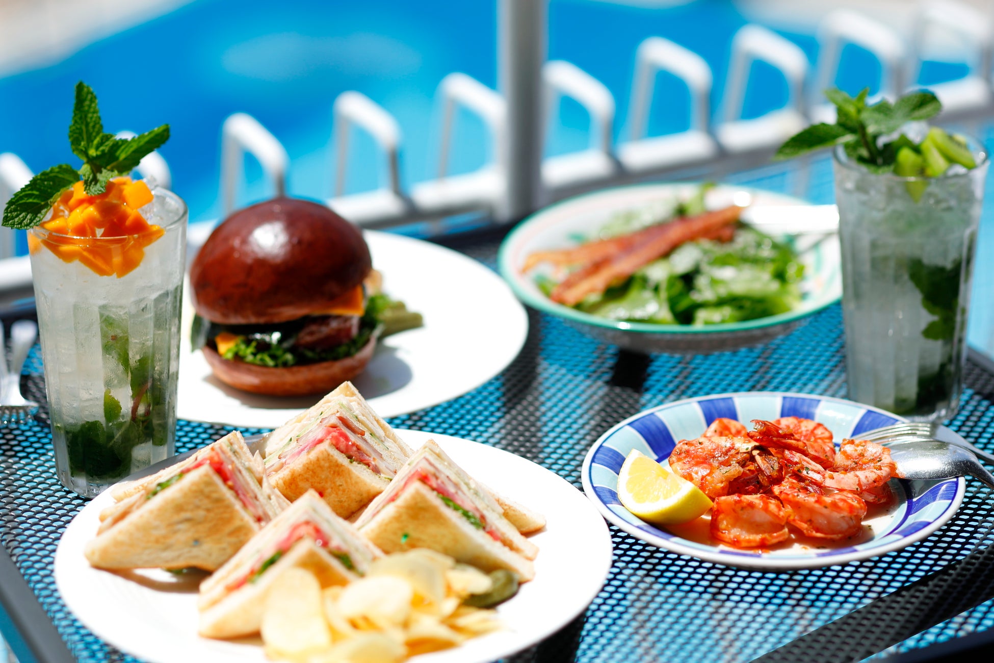 「GARDEN POOL」に隣接するプールサイドダイニング「OUTRIGGER(アウトリガー)」も、プールの営業にあわせてオープン。ハンバーガーなど、リゾート地に来たかのようなフード、バーテンダー特製のカクテルやノンアルコールドリンクが多様にラインアップ。水着のまま利用可能なため、休憩場所としてぜひご利用ください。
