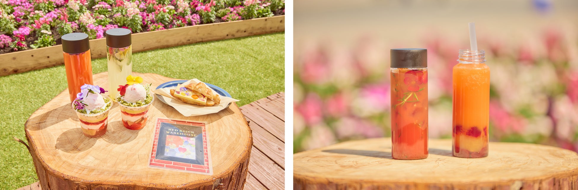 横浜赤レンガ倉庫 1・2 号館内のフードコートやカフェ・レストランでは、お花を眺めながらイベント会場でもお食事を楽しめるよう、特別なテイクアウトメニューが充実しています。フードコート内の一部エリアもお花の装飾で彩られ、食事の時間とともに春の雰囲気を満喫いただけます。「フラワーガーデンをモチーフにしたグルメが可愛い」「イベント目的だとなかなか館内に立ち寄る機会も少ないが、今回はイベントと連動したお花のメニューが気になり館内に寄った。お花畑と一緒に写真を撮ってInstagramに載せたい!」などと好評いただきました。