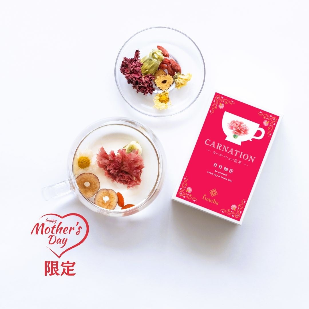 花と果実のみを使ったノンカフェインのお茶を販売。母の日には「飲むカーネーション」を贈りお母さんに、心と体の「キレイ」を届けましょう。