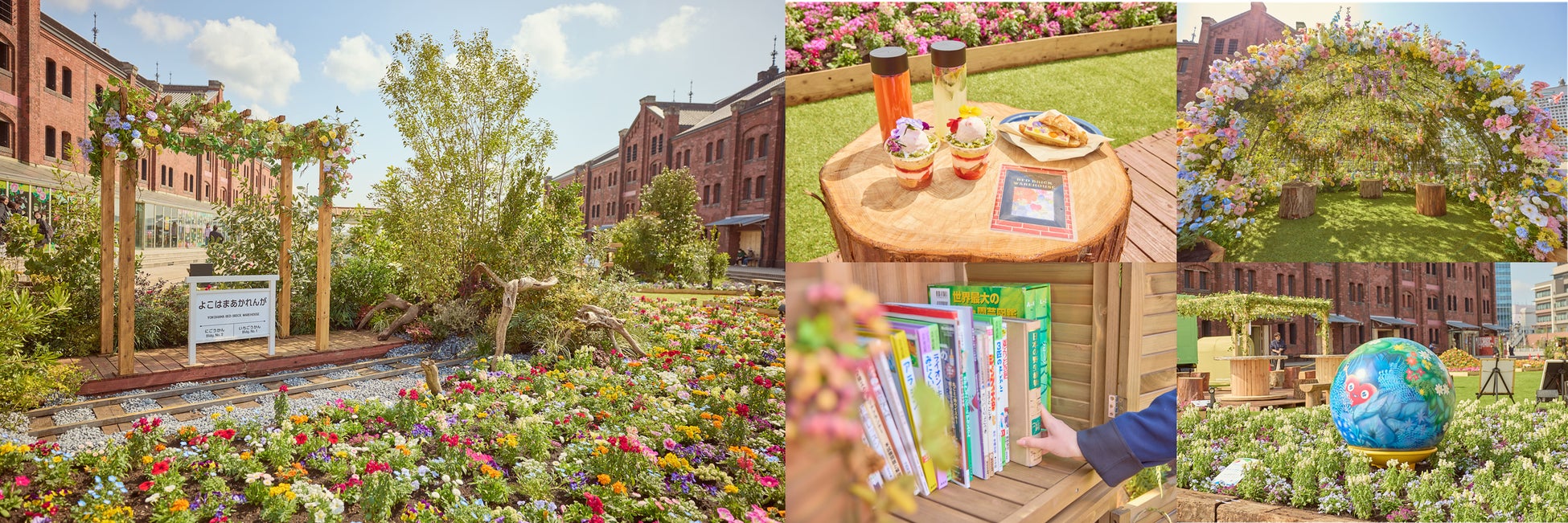 お花畑には、心温まる「ふるさと」の要素も散りばめられ、過去実際に横浜赤レンガ倉庫にあった駅をオマージュして花で彩った“駅のプラットホーム”や、民家の縁側をイメージした“花の水車”など、“ふるさと”を感じるフォトスポットも随所に登場しています。