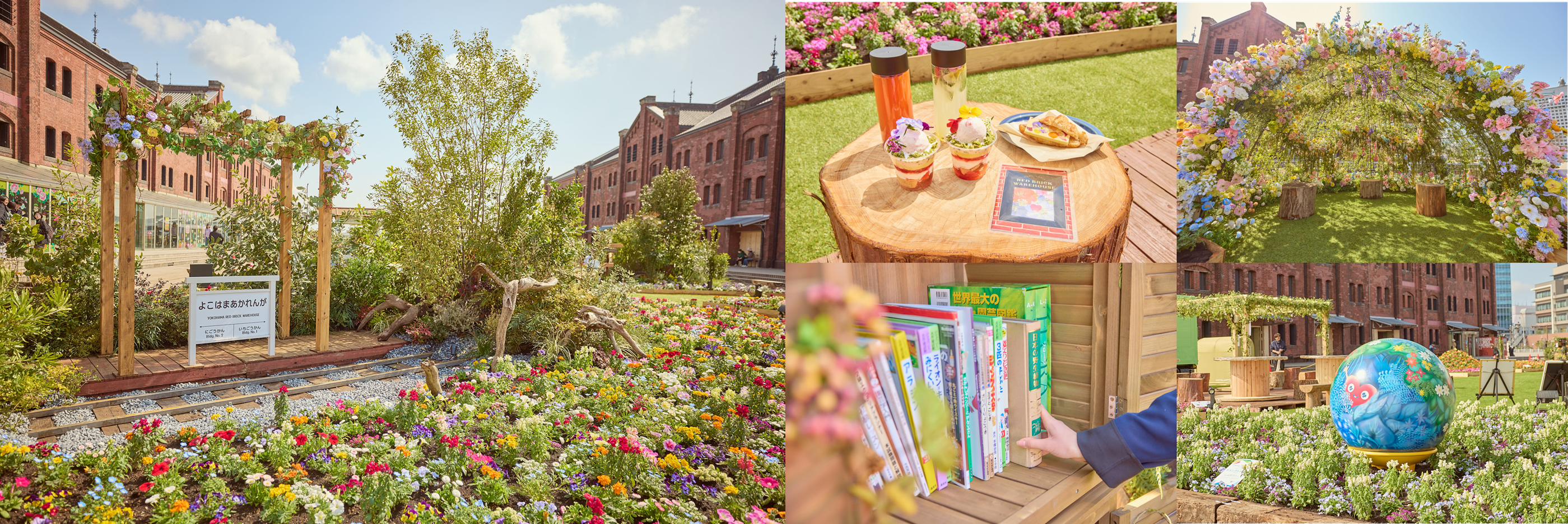 お花畑には、心温まる「ふるさと」の要素も散りばめられ、過去実際に横浜赤レンガ倉庫にあった駅をオマージュして花で彩った“駅のプラットホーム”や、民家の縁側をイメージした“花の水車”など、“ふるさと”を感じるフォトスポットも随所に登場しています。