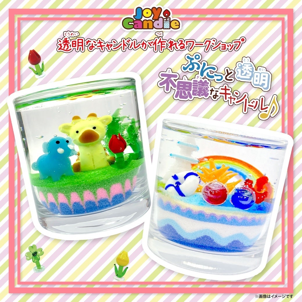 可愛い春のモチーフや動物、海の生き物などのガラス細工と組み合わせ、世界に一つだけのキャンドル作りをお楽しみください。