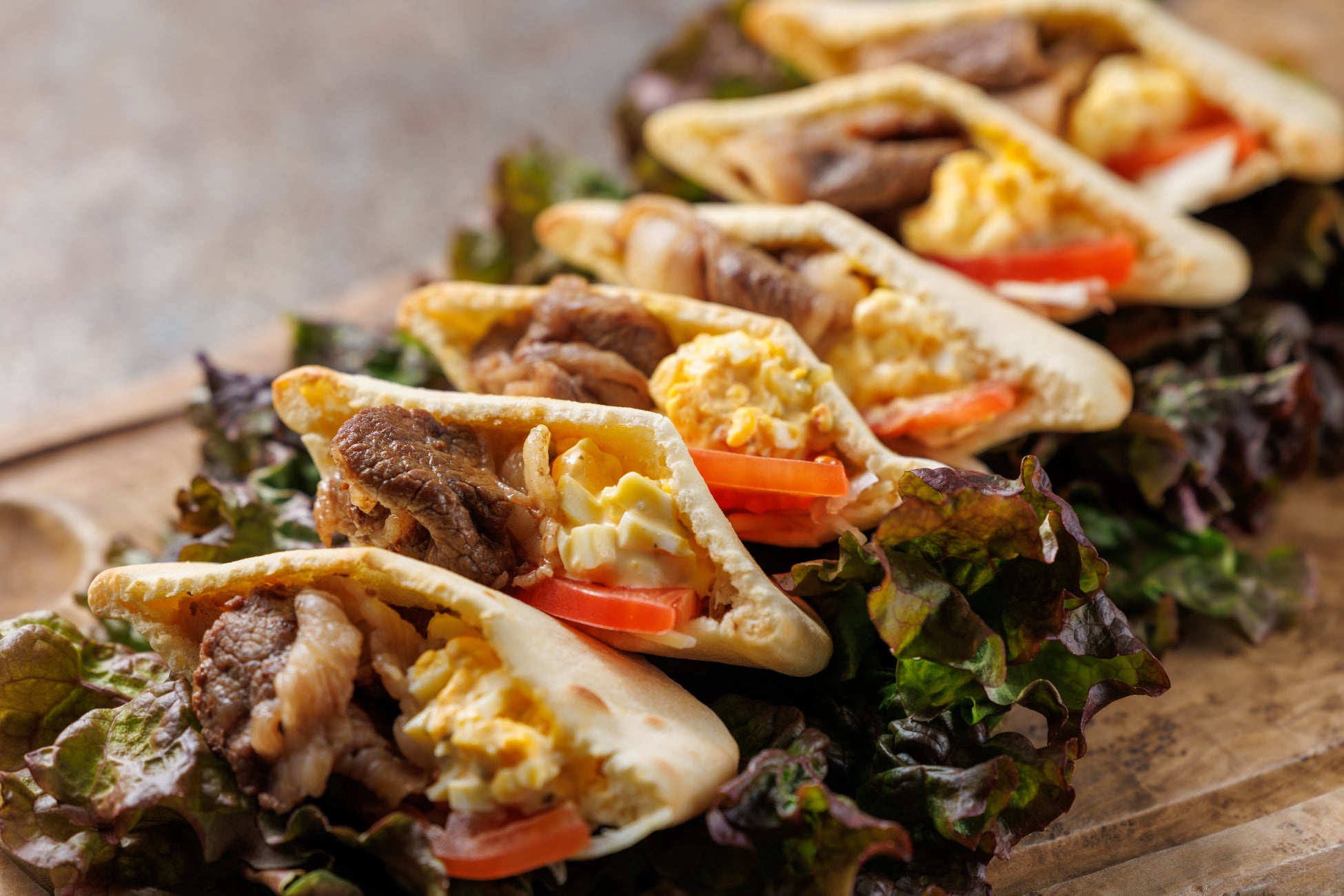 和牛を使った「ケバブサンド」をライブキッチンから提供します。大山むらさき醤油で漬け込み鉄板で焼いた熱々の和牛や野菜、卵をピタパンにサンド。旨味が染み込み濃厚な味わいの和牛と、トマトや玉ねぎのさっぱりとした味わいがマッチして、いくつでも食べられる美味しさです。