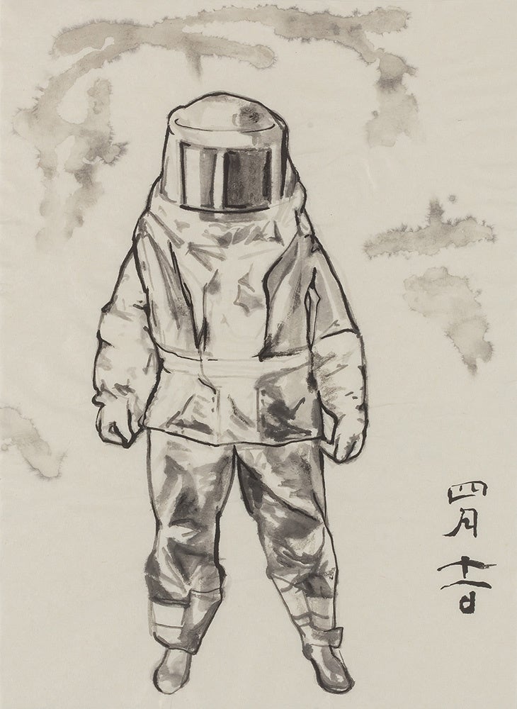 ここでは邪気をもたらす「魔」や煩悩を祓い除ける伝統的なものから、現代の日常の災いや病を払い、健康や安寧を願うものまで、私が思いついたままに描き、関連する日付をつけて、北斎の画室「碧漪軒」(註3)から外に捨てられる装置作品とし、来館者に人って持って持ち帰ってもらえるようにした。(コメント:福田美蘭)