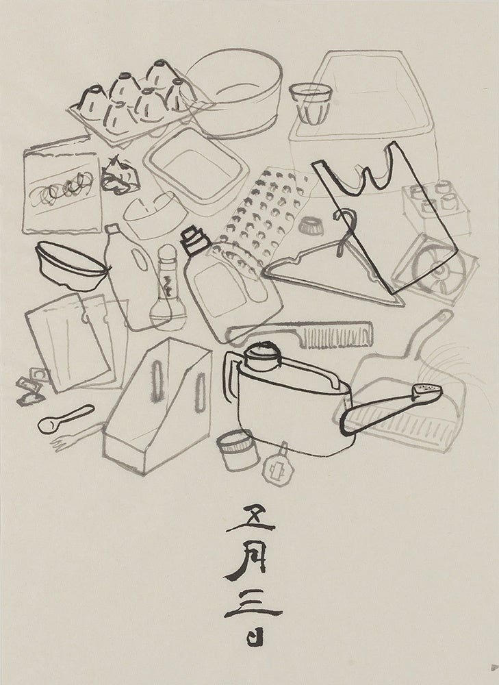 ここでは邪気をもたらす「魔」や煩悩を祓い除ける伝統的なものから、現代の日常の災いや病を払い、健康や安寧を願うものまで、私が思いついたままに描き、関連する日付をつけて、北斎の画室「碧漪軒」(註3)から外に捨てられる装置作品とし、来館者に人って持って持ち帰ってもらえるようにした。(コメント:福田美蘭)