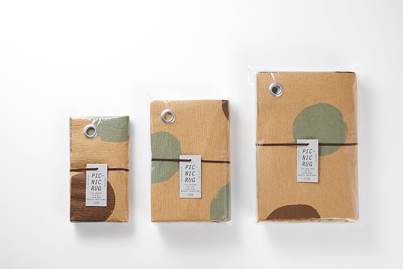 今回新発売する「ドット」は、機械的に整列した無機質なデザインではありません。職人が筆で絵付けをした陶器のような、素朴で温かみのある表情を目指し、あえて形を崩した手書き感のある「ゆらぎ」を採用しました。カラーは、春の息吹を感じさせるピンク×グリーンの「ピンク」と、大地のような安心感のあるブルー×ブラウンの「ブルー」の2色展開。用途に合わせて選べるS(1人用)、M(1〜3人用)、L(2〜4人用)の3サイズをご用意しています。工業用クレープ紙のタフな質感と、遊び心のある手書きデザインが、屋外での時間をより心おどるものへと変えてくれます。