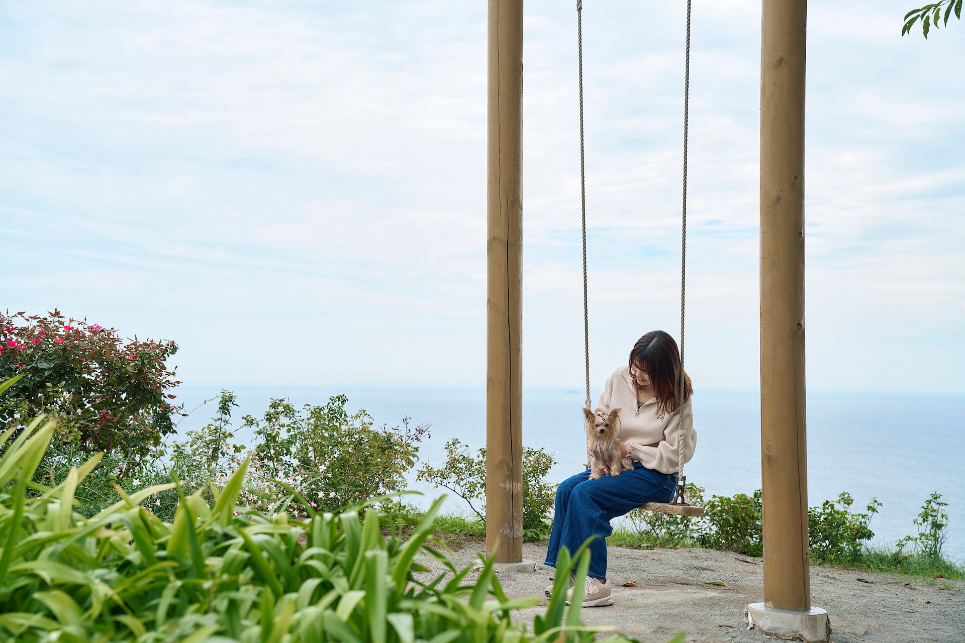 ガーデンは、チューリップやシバザクラなど春の花々が各所で見頃を迎えます。また、オーシャンデッキ付近のフォトスポットにて愛犬と一緒にお散歩しながら思い出の写真を撮影してお過ごしください。