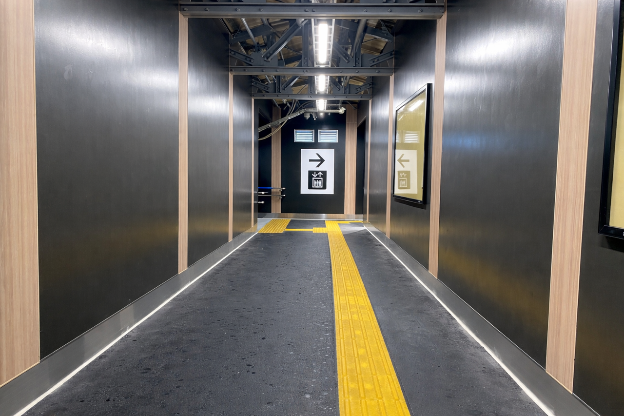 上りホームスロープ、バリアフリートイレ、上下ホームエレベーターを新しく整備し、段差が解消された「バリアフリールート」としてご利用いただけるようになりました。