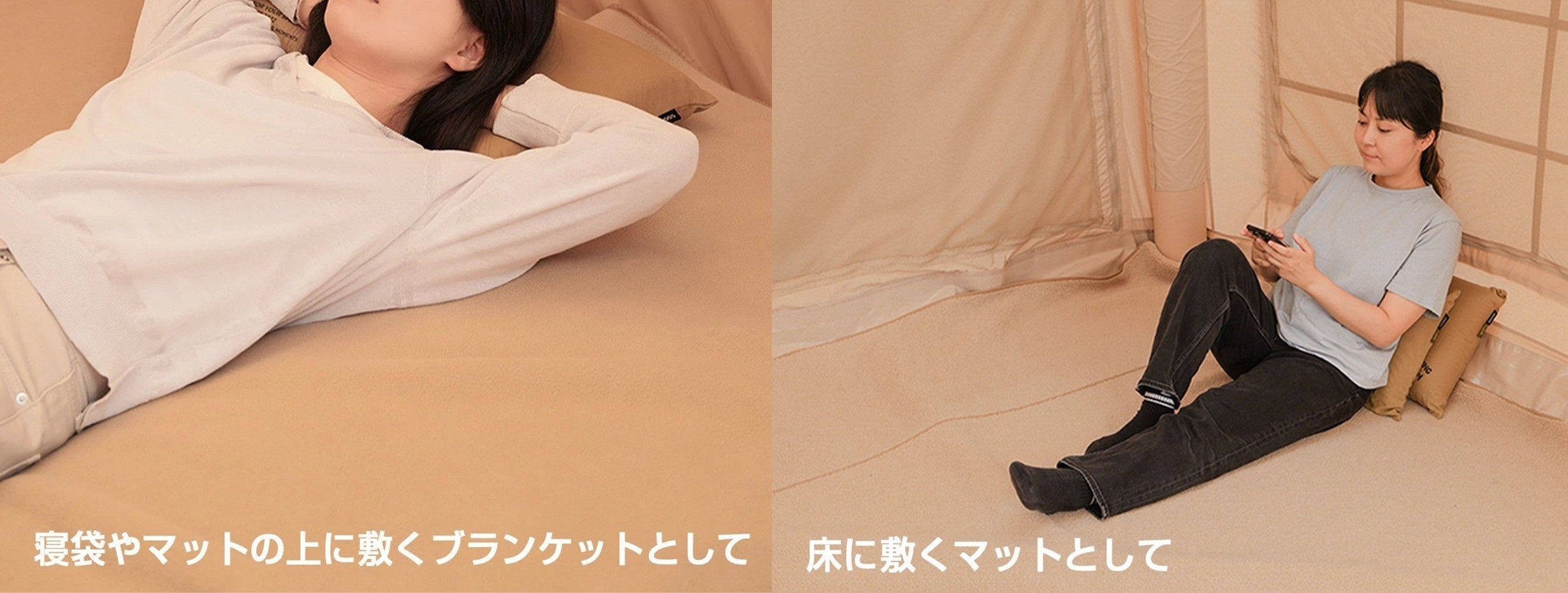 一枚あるだけで、どこでも快適であたたかな時間を過ごせます。