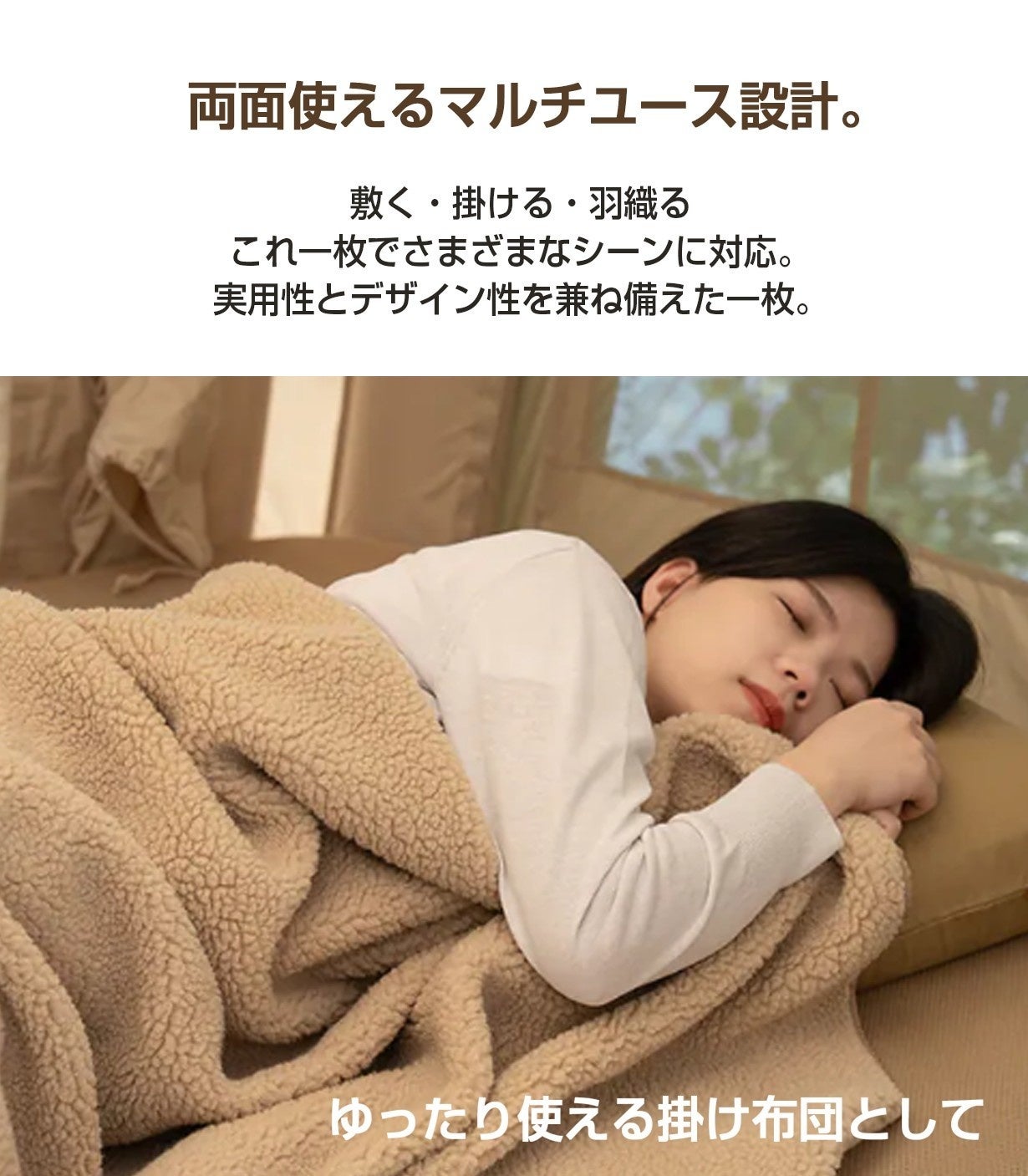 敷く・掛ける・羽織るなど、シーンに合わせて使えるマルチユース設計。