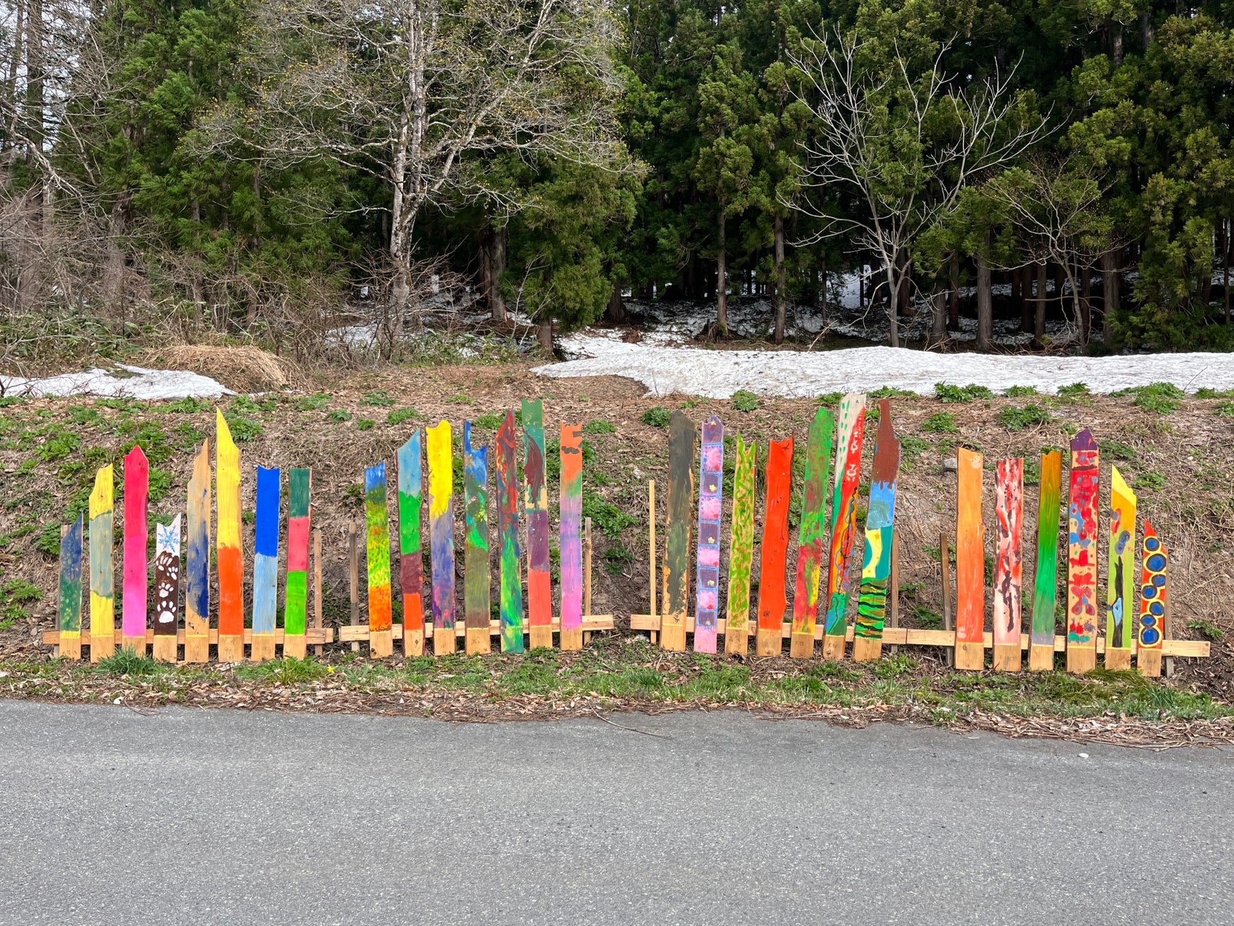 春の森を歩きながら、展示中の作品の前でお話しします。作家さんも来てくれるかも?歩きやすい服装と靴(もしくは長靴)でお越しください。