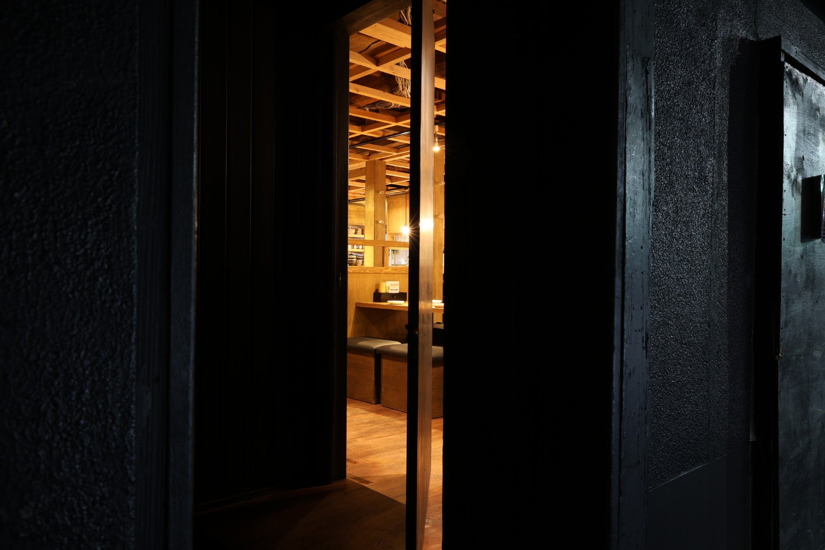 一見しただけではお店などないかのような、暗闇に溶け込む漆黒の外観が特徴。