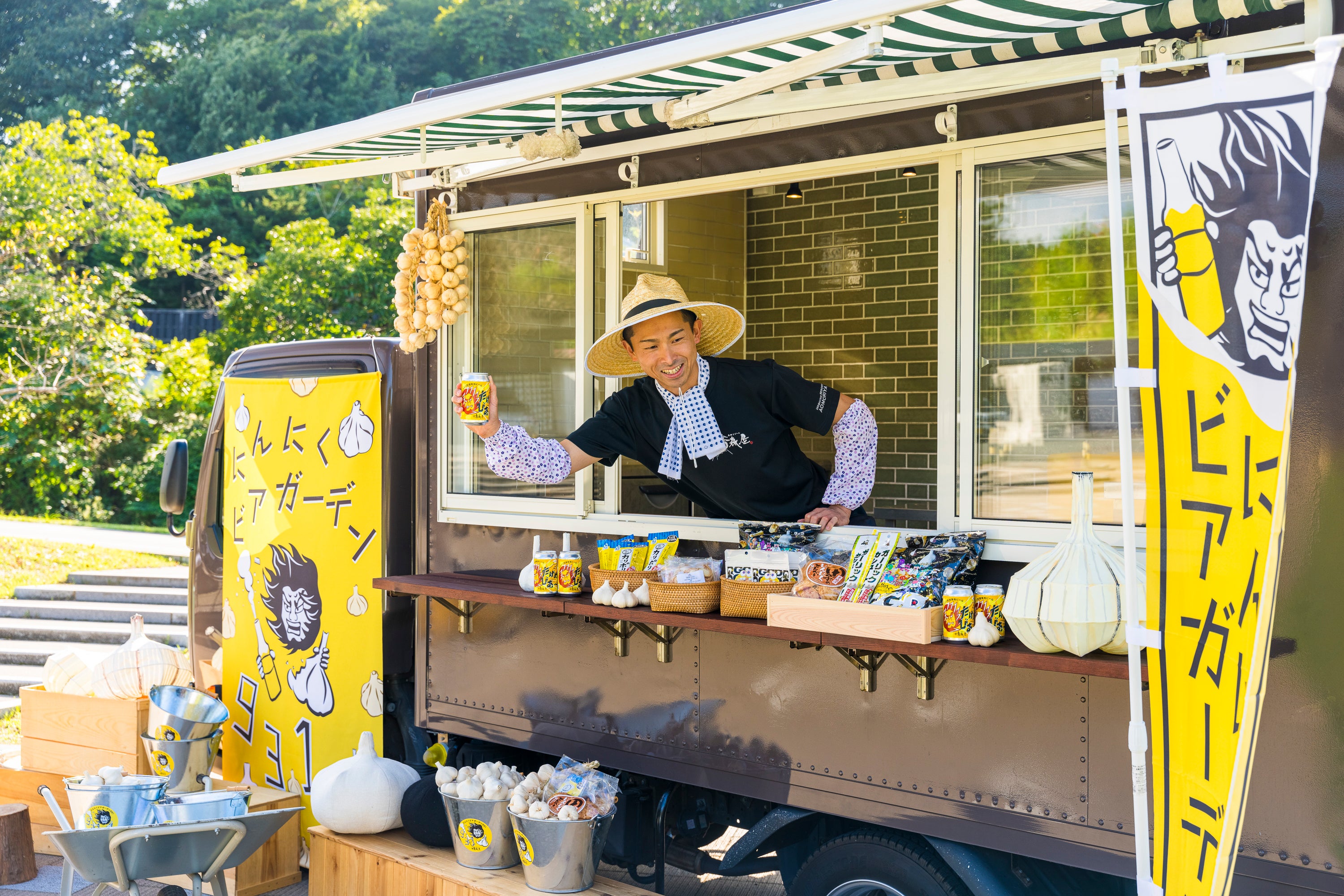 気軽に食べられるにんにくのおつまみを揃えた「にんにくこんびりショップ」が登場します。ほのかににんにくの風味を感じられ、マイルドで大人から子供まで食べやすい「にんにくアイス」から、にんにくの旨みを香ばしく楽しめる「にんにくチップス」まで、暑い夏を元気に乗り切るパワフルなおつまみが全5種類並びます。