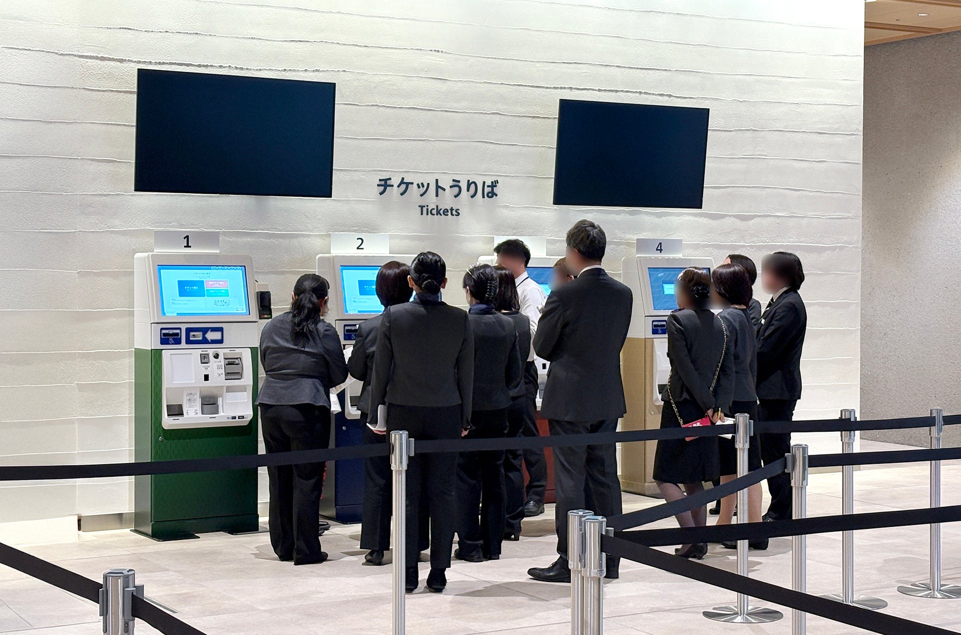 マルチリンガル(多言語)音声&表示やアニメーションガイド機能がある大型ディスプレイのタッチパネル型券売機。当日券のほかオンライン事前購入のQRコード読み取りによる無人発券に対応します。