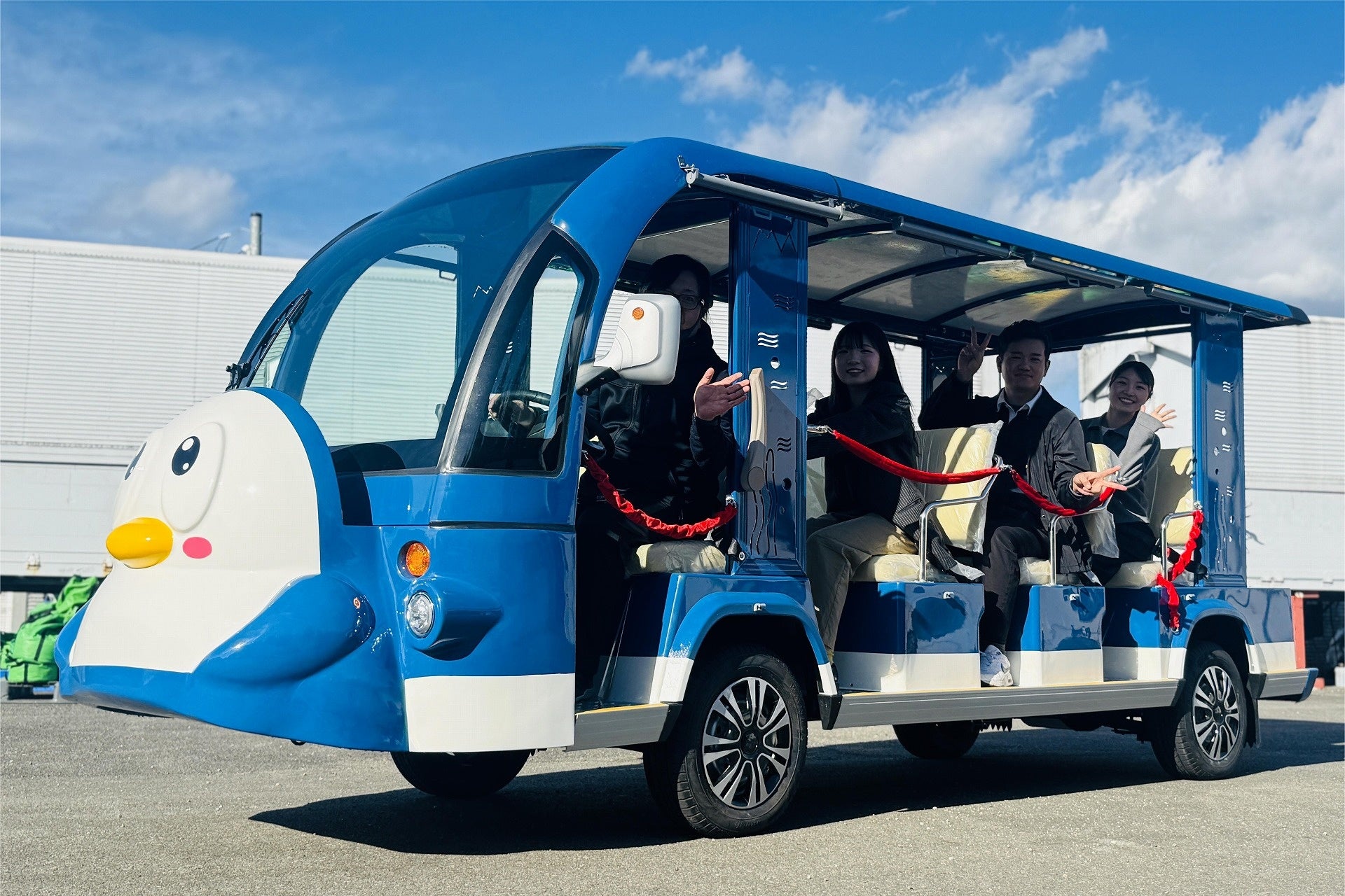 最大10人乗りで全席シートベルトを完備。排気のにおいやエンジン音がないため、屋内施設やフードイベント、動物と触れ合う会場でも安心・安全に運行できます。