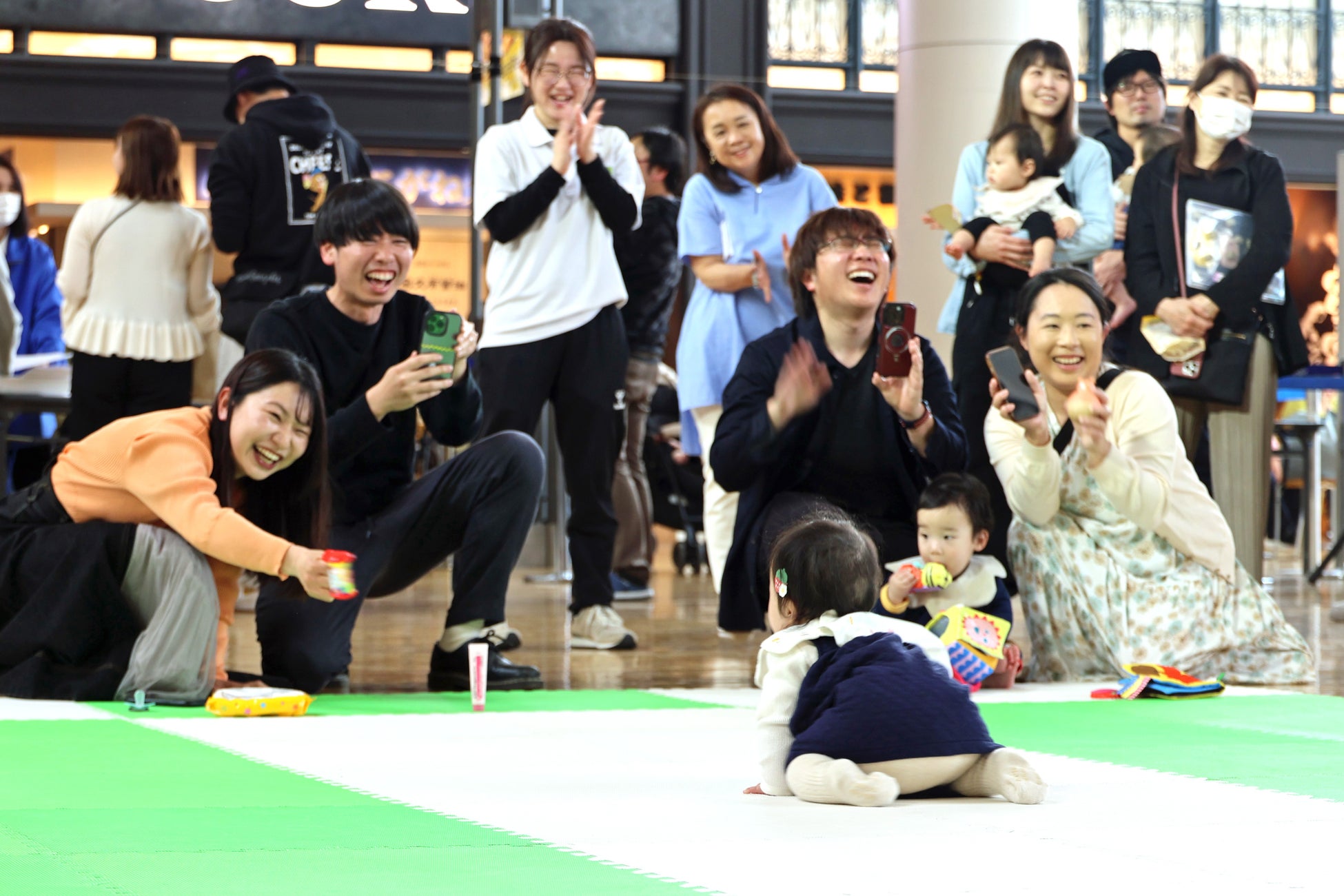 会場では、思わず立ち上がってお友だちを応援する赤ちゃんや、途中で寝転んでしまう赤ちゃん、パパやママの声援に知らんぷりを決め込む赤ちゃん、泣いてしまう赤ちゃんなど、一人ひとり個性あふれる愛らしい姿が見られました。さまざまな表情に包まれたレースは、参加者や観覧者の温かな笑顔にあふれる、何とも微笑ましいひとときとなりました。
