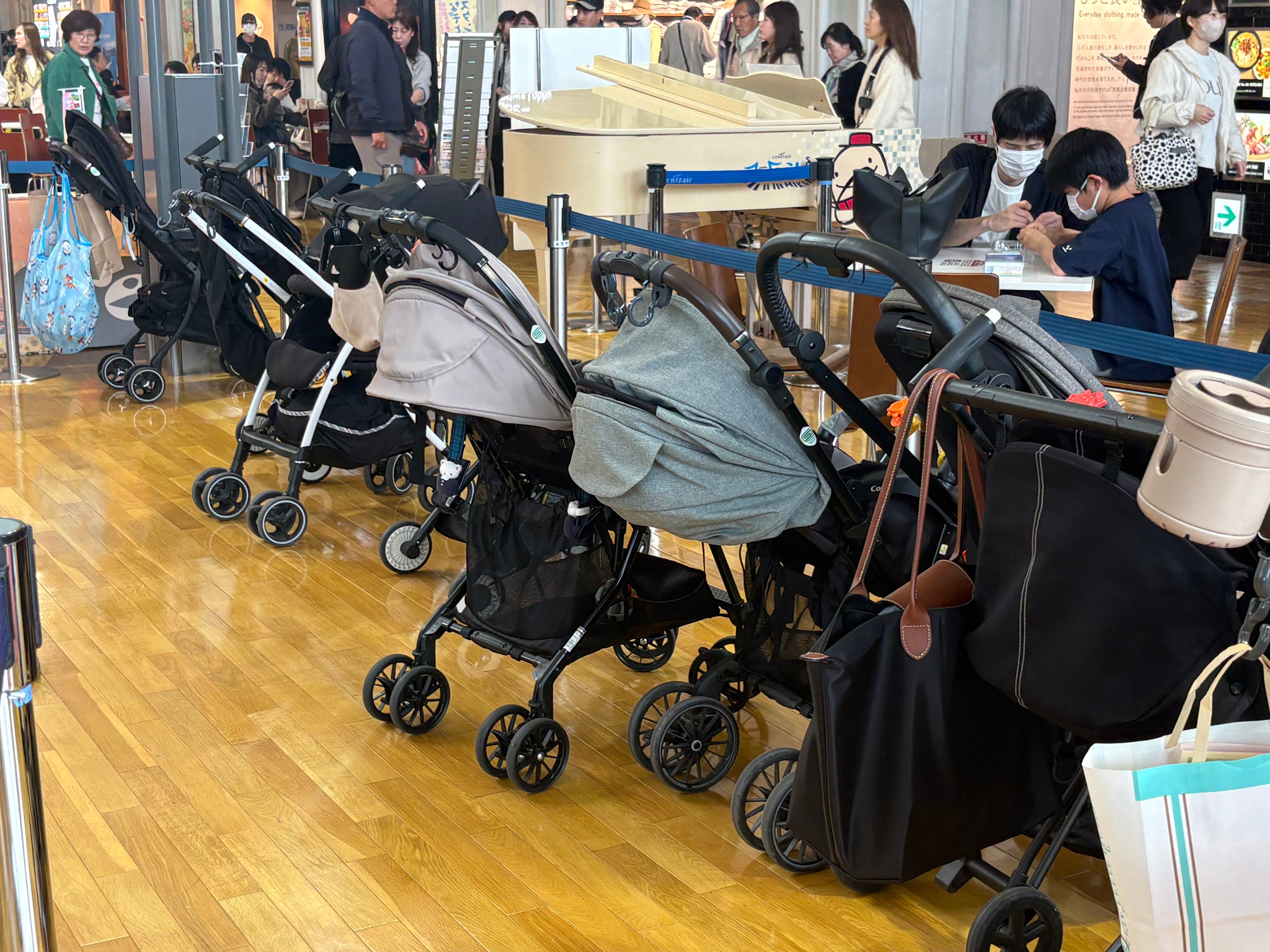 レースには、2日間で計280名の赤ちゃんが参加しました。予約時間が近づくにつれ、赤ちゃんとご家族が続々と受付に集まり、会場はにぎやかな雰囲気に包まれました。ベビーカー置き場も次第に埋まり、イベントへの注目度の高さがうかがえました。