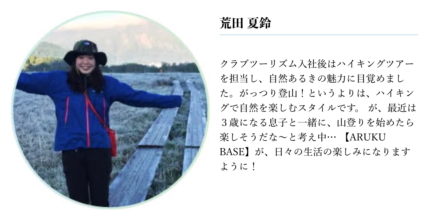 『ARUKU BASE』を盛り上げるのは、これまでクラブツーリズムでアウトドアツアーを企画してきた個性豊かなスタッフの皆さんです。百名山の達人から、子育て中のママハイカーまで、多様な視点でコミュニティをナビゲートします。