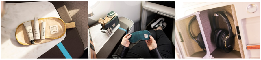 • 寝具やアメニティ:米国太平洋岸北西部を代表するブランドFilsonとの協業による高級寝具を採用しました。厚手のマットレスパッドや柔らかな枕、ランバー/ラウンジ用ピロー、大判デュベに加え、アラスカ航空限定のFilson製アメニティバッグを提供します。各キットには、Salt & Stoneのスキンケア製品やトラベル必需品が含まれます。さらに、PATH Waterとの提携による再利用可能な特製ウォーターボトルもご用意します。