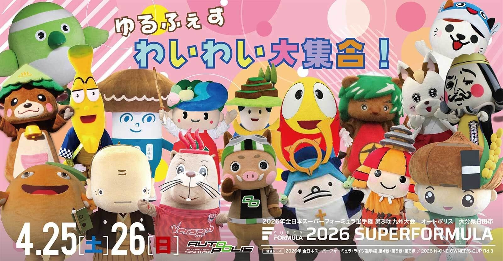 国内最⾼峰のモータースポーツである全⽇本スーパーフォーミュラ選⼿権(以下「SUPER FORMULA」)を運営する株式会社⽇本レースプロモーション(以下「JRP」)は、4/25(⼟)・26(⽇)の2⽇間、オートポリス(⼤分県⽇⽥市)で開催される2026 SUPER FORMULA 第3戦の⼤会概要及びチケット情報を発表いたしました。