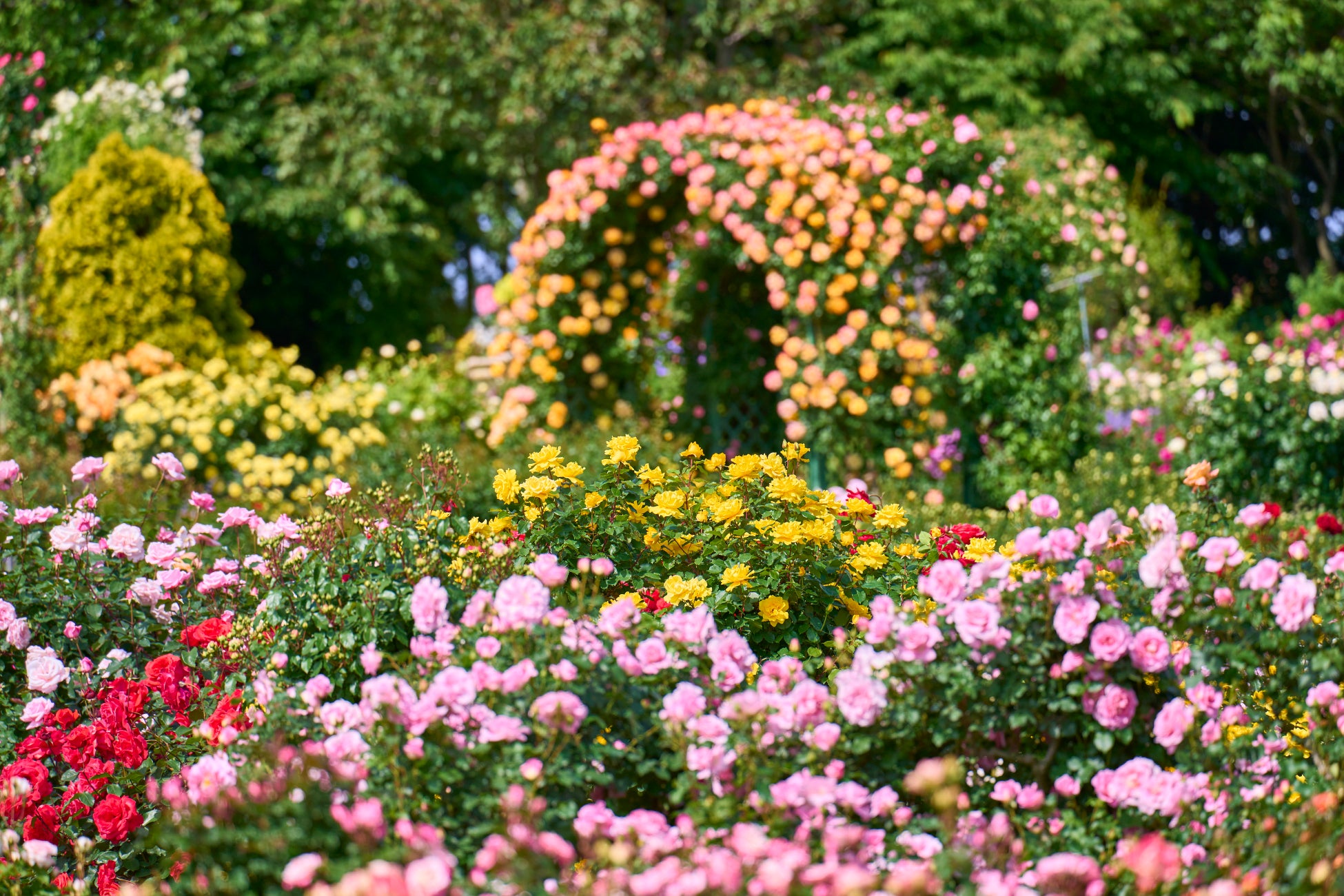 春にだけ開花する「春バラのアーチ群」は、園内に広がる計38本のアーチに多彩なつるバラが個性豊かに咲き誇り、夢のような景色を創り出します。また関東で一番早く咲くバラ「アーリーローズ(早咲かせのバラ)」を温室内で鑑賞頂けます。