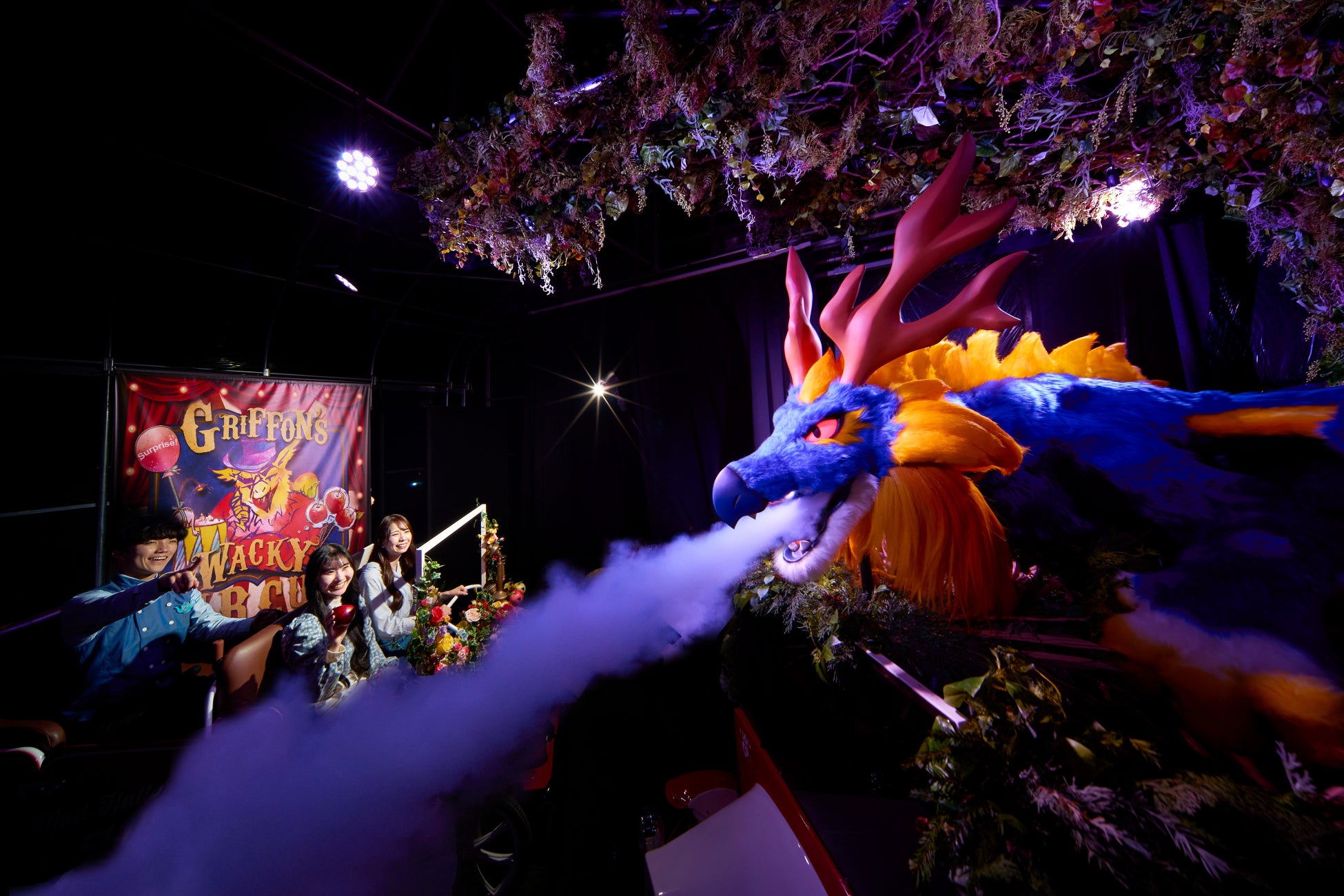 ゲストは回転する木馬にまたがり、シャボン玉が飛び出すリボルバーを操ります。