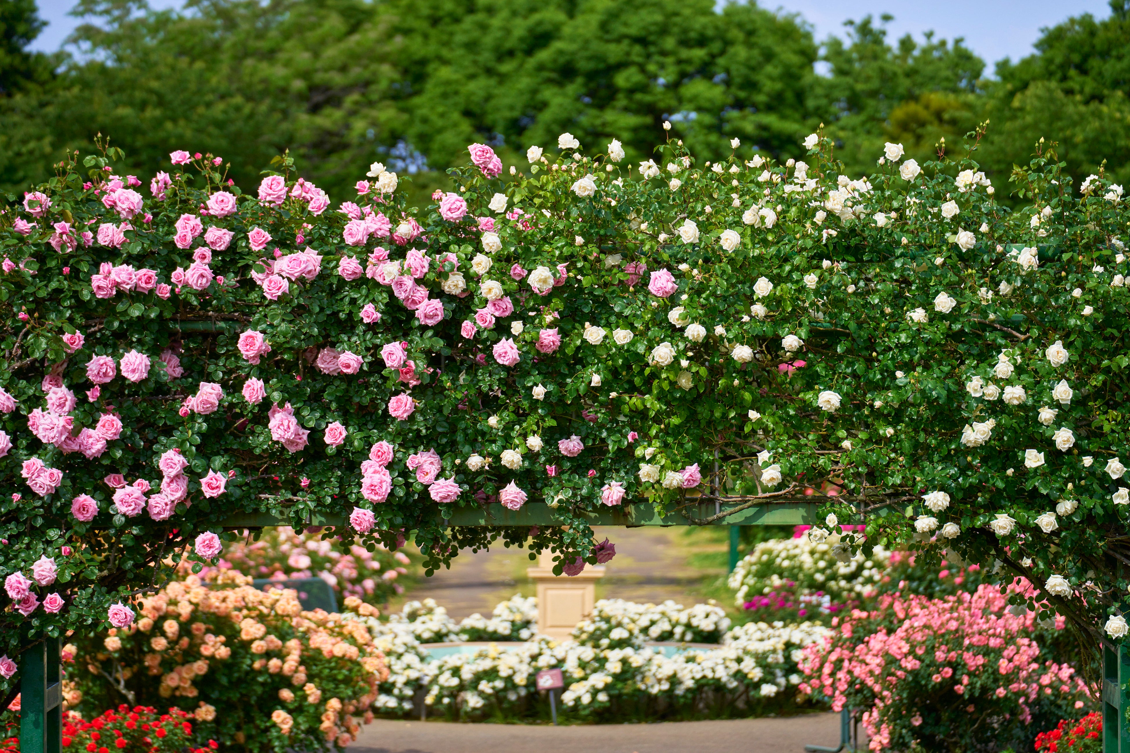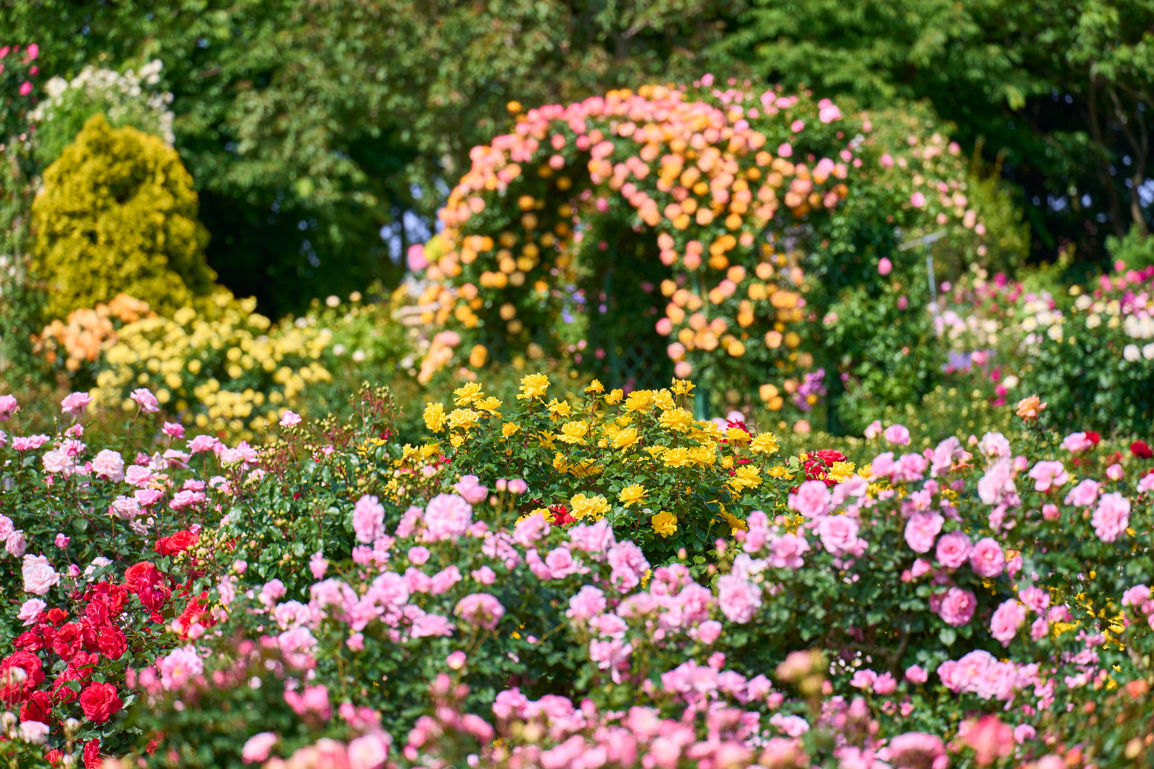 春にだけ開花する「春バラのアーチ群」は、園内に広がる計38本のアーチに多彩なつるバラが個性豊かに咲き誇り、夢のような景色を創り出します。また関東で一番早く咲くバラ「アーリーローズ(早咲かせのバラ)」を温室内で鑑賞頂けます。