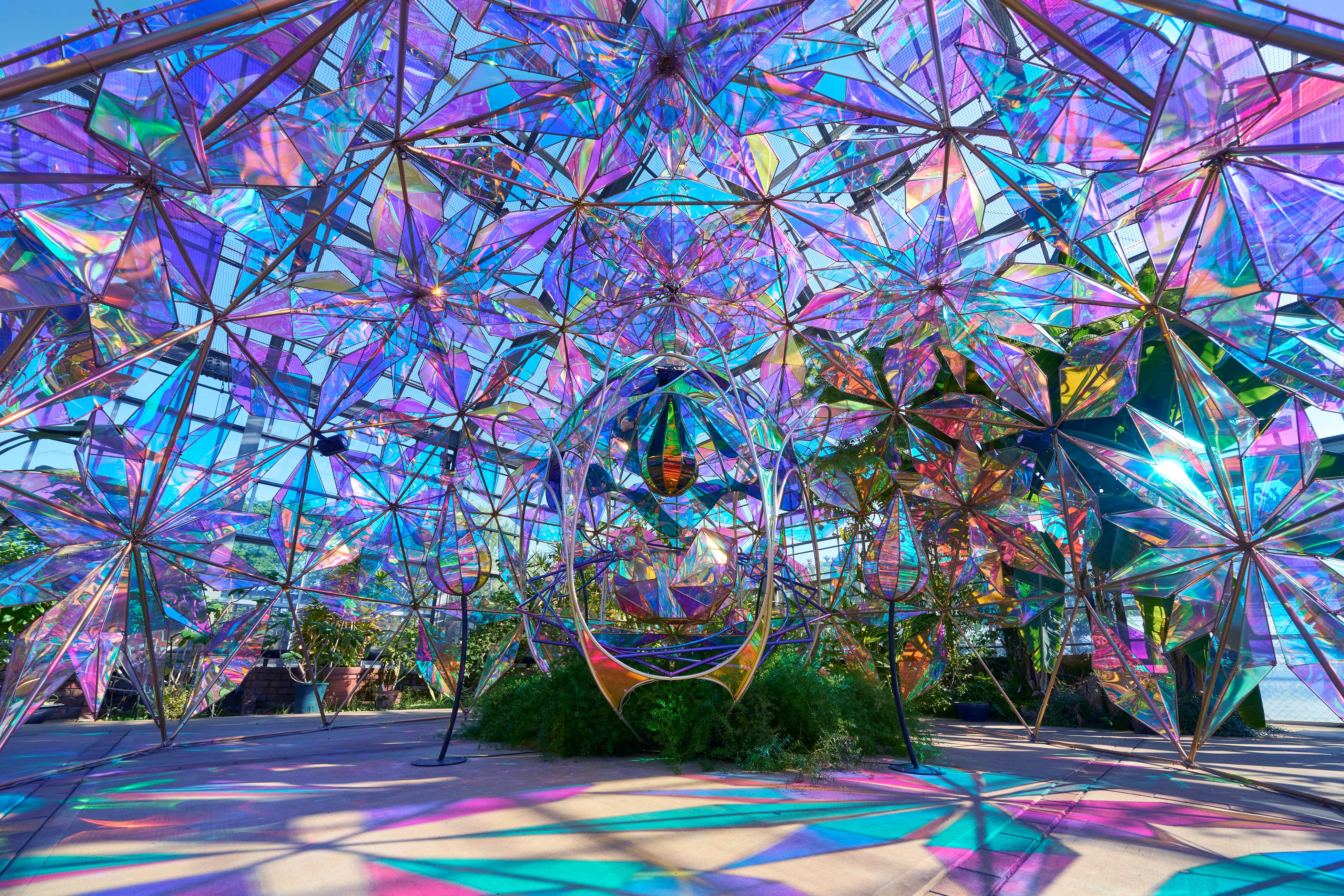 ローズガーデンの大温室に配された2つの表情をみせるインスタレーション