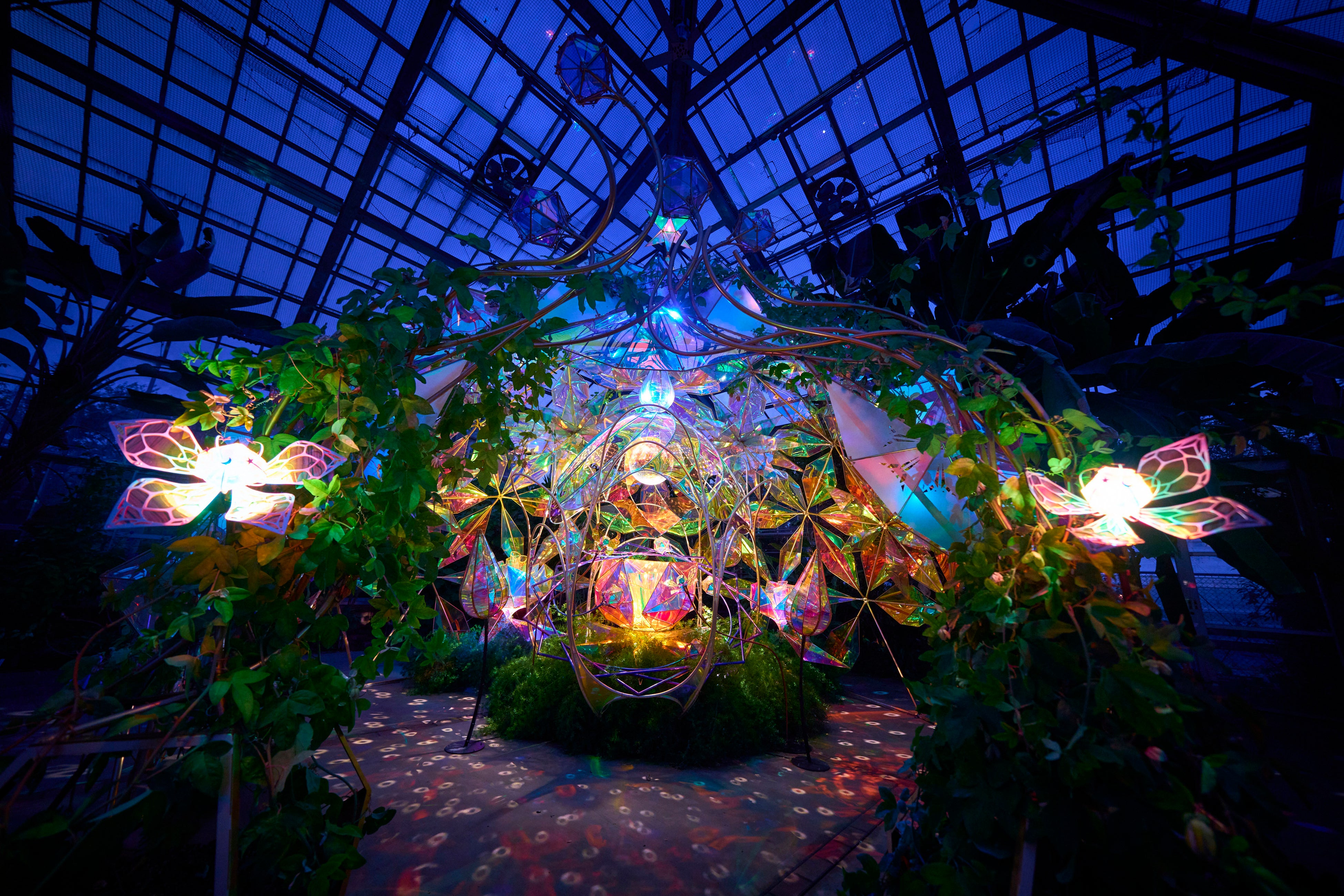 今回、作家らによる作品のリフレッシュメンテナンスを行い、蝶のモチーフの刷新やライティング演出のリプログラムが施されました。