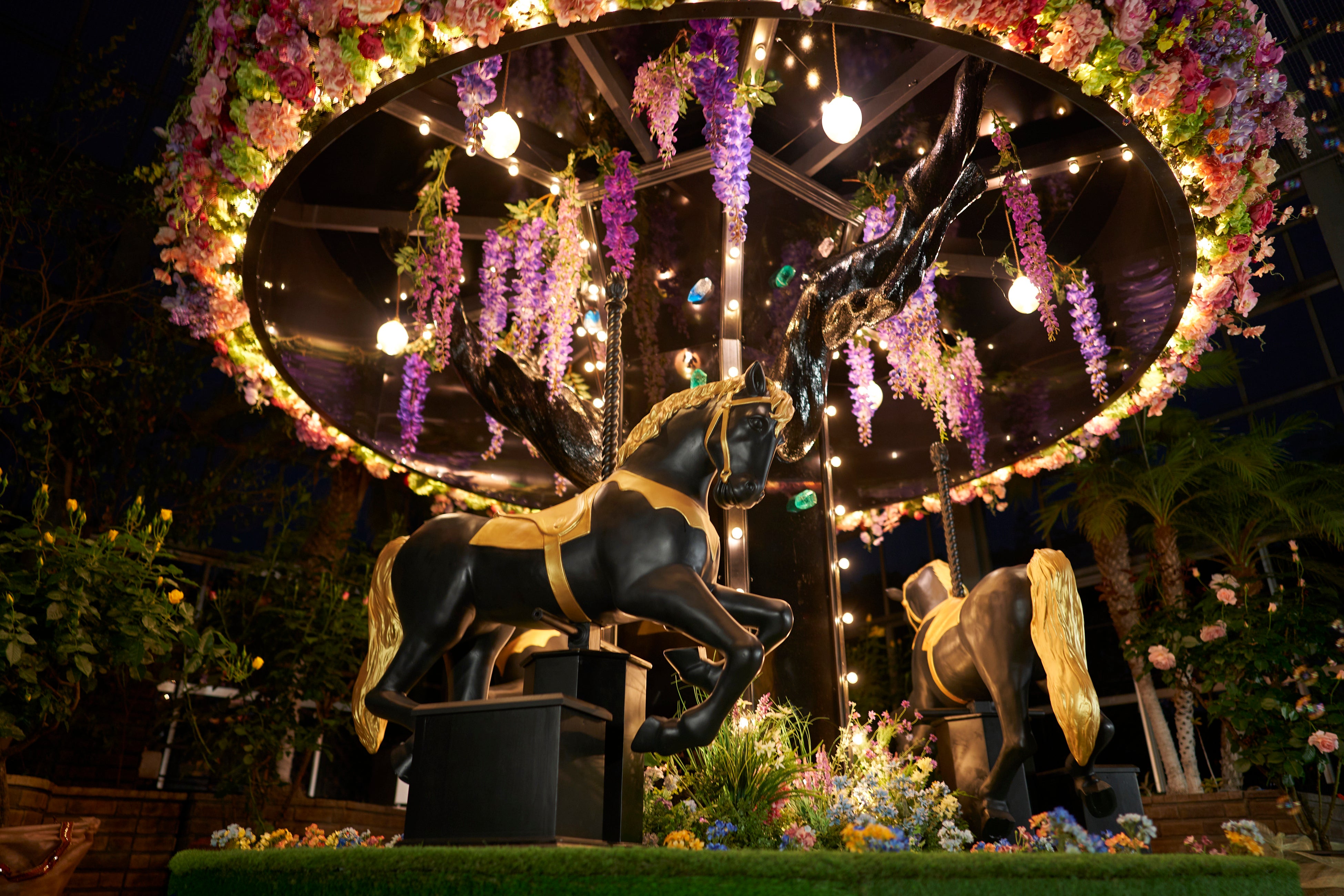 大温室を華やかに彩る3名乗りのメリーゴーランド「ブリリアント ツリー」。