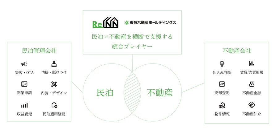 ReINNは、民泊の開業から運営、売買までを横断的に支援する包括プラットフォームを提供しています。民泊物件の購入のご相談から、民泊専用ローンのご案内、民泊の管理・運営を代行する住宅宿泊管理業者のご紹介など、民泊事業に必要な機能をワンストップでつなぐことで、オーナー様の意思決定を支援しています。2026年3月現在、民泊の管理・運営を担う住宅宿泊管理業者や、民泊物件の取扱いに強みを持つ不動産会社など累計40社以上と連携しています。物件・資金・運営の各領域をまたいで最適な支援先を提案できることがReINNの強みです。