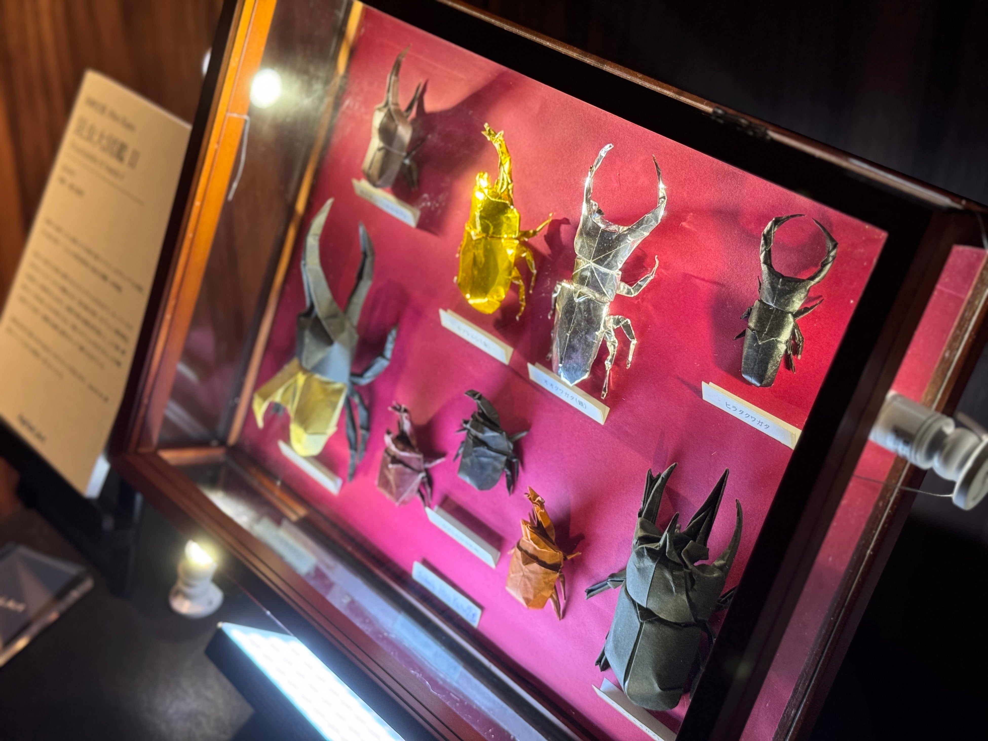 1枚の紙から折られたハチ公や鹿、平面と立体を行き来する巨大折り紙作品など